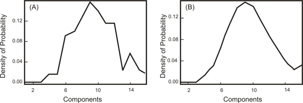 In order to eliminate noisy features in the probability density curve, the inverse NAPC rotation was performed, considering the six signal components. This procedure allows an intense smoothing of the probability density curve, without serious signal degradation (Figure 9). The amount of noise reduction is dependent on the correlation among components.