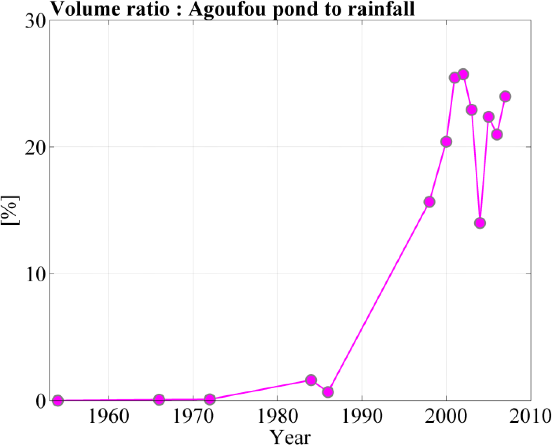 Concurrently to the observation of a re-greening Sahel over the last decades, several studies showed that the run-off coefficient, defined as run-off divided by the rainfall amount, has dramatically increased from the 1950s up to now (for a review see Descroix et al. [18]; also refer to Mahe and Paturel [19] and references therein). In many places, the increased water table height fed by run-off (for instance in endoreic south-western Niger [20]), increased river run-off [21,22], increased pond surface [23], or increased flood of the Niger river [24] have been revealed after the strong droughts of the 1970s and 1980s. These phenomena are observed although rainfall decreased over the same period: this is known as the “Sahelian paradox” [25].