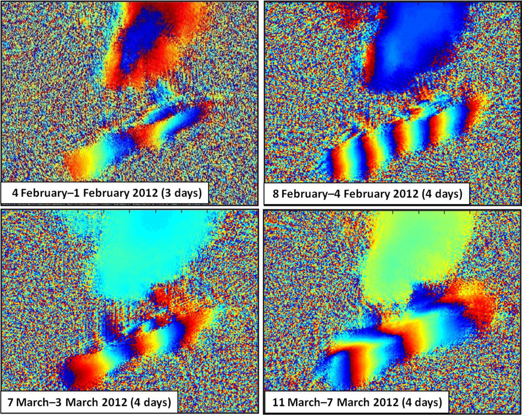 Interferometric synthetic aperture radar (InSAR) was adopted to extract motion information from the phase of the available SAR images. InSAR is the measurement of signal phase change, or interference, over time. When a point on the ground moves, the distance between the radar and the point on the ground also changes and, so, the phase value recorded by the sensor. By comparing the phase values of two SAR images acquired at different times, it is possible to detect changes that reflect the motion of the target on the ground along the satellite LOS. This simple concept can be used successfully whenever radar targets on the ground do not change their “radar signature” over time, i.e., the radar returns are expected to be identical in the two acquisitions. In real cases, this never happens, and the phase information is affected by a noise, known as temporal decorrelation: the larger the time separation between the two images, the stronger the decorrelation. These two approaches have different advantages and limitations.