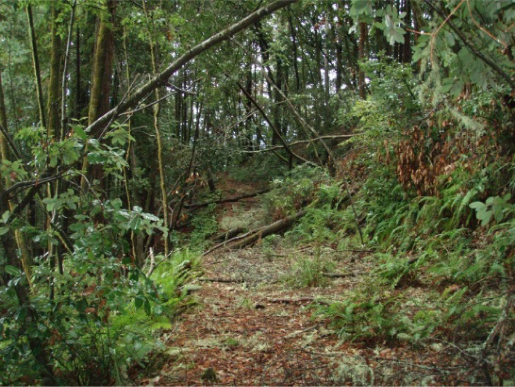 The Marin Municipal Water District purchased the lands and logging rights for the area containing the study site in 1949 [32]. The extensive network of logging roads found within the study site was likely built shortly after. Between 1949 and 1952 an estimated 3 million board feet of timber was processed at the Ruoff mill, the destination of timber from the study site [32].