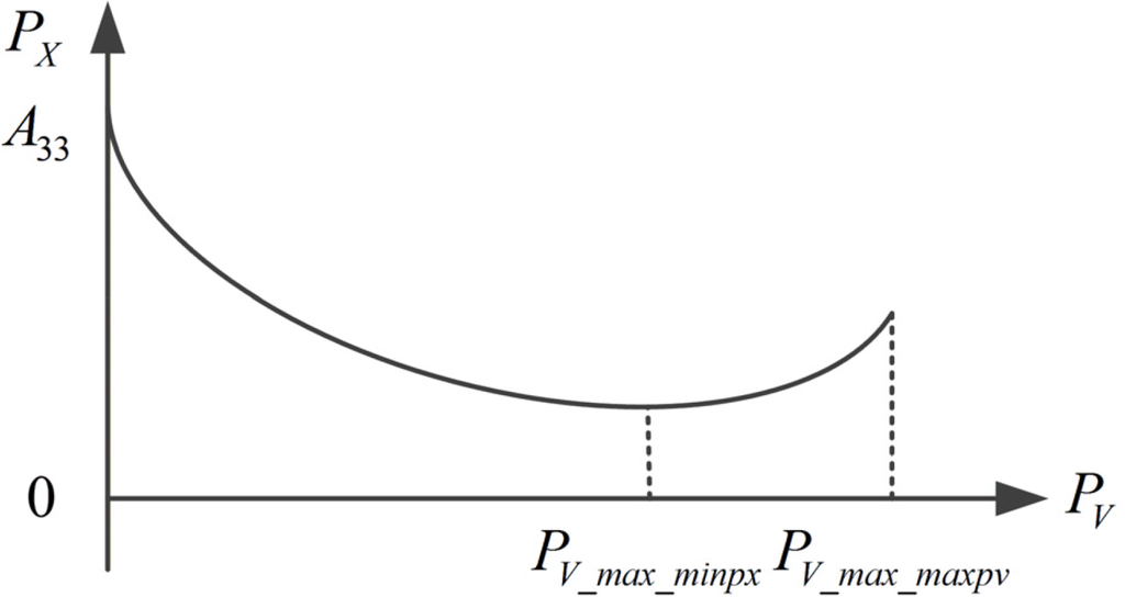 Again, τV is confined within [0.5, 1.0]. For each τV, we compute [TVol(τV)] and corresponding PV_max, PX. Among all results, choose the τV and PV_max that produce PX_min If more than one combinations of τV and PV_max give the same PX_min, then choose the one with the smallest PV_max. We denote the chosen τV as τV_minpx and PV_max as PV_max_minpx. Considering that PV_max_maxpv is the maximal one of PV_max, we have PV_max_minpx ≤ PV_max_maxpv, indicating that minimum PX criterion tends to lower the estimation of PV (see Figure 2). Combining this conclusion with Equation (21), we could know that in order to get smaller PX, PVB33 needs to be larger. Since PV_max_minpx ≤ PV_max_maxpv, so B33 or τV by minimum PX criterion should be larger than B33 or τV by maximum PV criterion. In other words, τV_minpx > τV_maxpv. Section 5 provides a detailed analysis. Finally, [TRemainder] is expressed as: