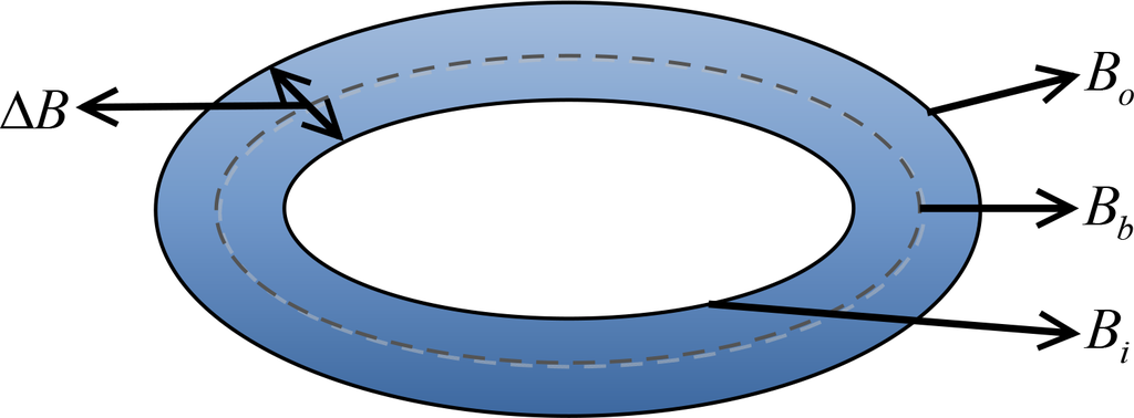 Let Bi and Bo represent two elliptical structuring elements with the same shape. As shown in Figure 5, Bo is called the outer structuring element. Bi is called the inner structuring element. Bb represents the structuring element whose size is between Bo and Bi. The margin structuring element ΔB= Bo − Bi is the margin region between Bi and Bo. The relationship of Bi, Bo, ΔB and Bb is demonstrated in Figure 5.