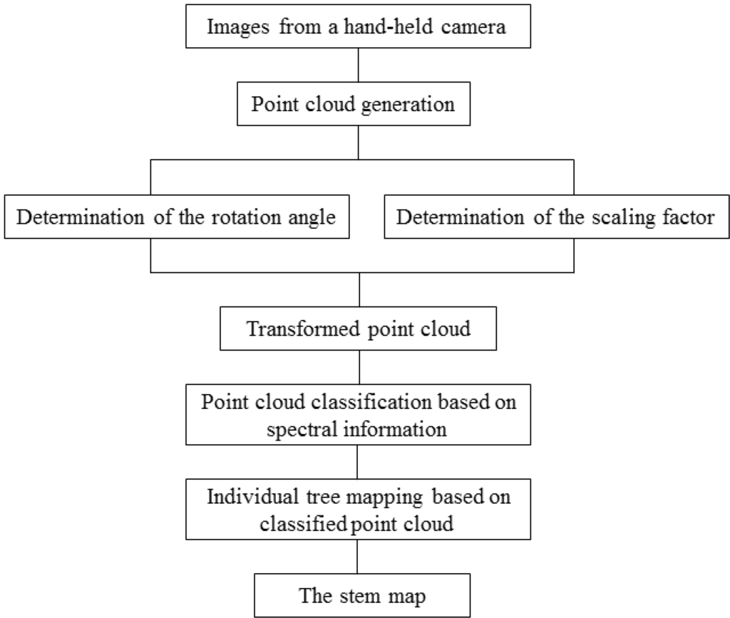 The flow chart of the data processing is shown in Figure 2. Three main steps include the point cloud generation, the point cloud transformation and the individual mapping using the image-based point cloud.