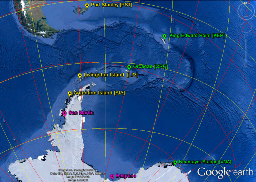 The geophysical observatory of the ASJI in Livingston Island (62°39′46″S, 60°23′20″W) started in December 1996 with the current geomagnetic station, though new instrumentation has gradually been added up to fulfill the evolving standards of observation. A Vertical Incidence Sounder, VIS, with their emitting and receiving antennas and their control electronics was installed in the ASJI under the framework of the Spanish project REN2003-08376-C02 during the Antarctic summer survey 2004–2005, completing the geophysical observatory in that remote region. The relative low density of geophysical data around the Antarctic (see Figure 1) gives our observatory an added value, with data that otherwise should be obtained by other means, such as marine and aeromagnetic surveys, or satellite data. Besides their different characteristics and objectives, however, these latter types of data lack the fundamental feature of persistence in the long term. Having long data series in a given location provides information on the time evolution of the physical magnitude being measured, which is essential to many studies, such as those related to the secular variation of the main magnetic field in our case, or those related to the 11-year solar cycle variation. The availability of 17 years of geomagnetic data at LIV, for example, enables to average out transient effects in magnetic and ionospheric data, which otherwise would be biased by natural reasons, or at least would provide an incomplete vision of the real behavior.
