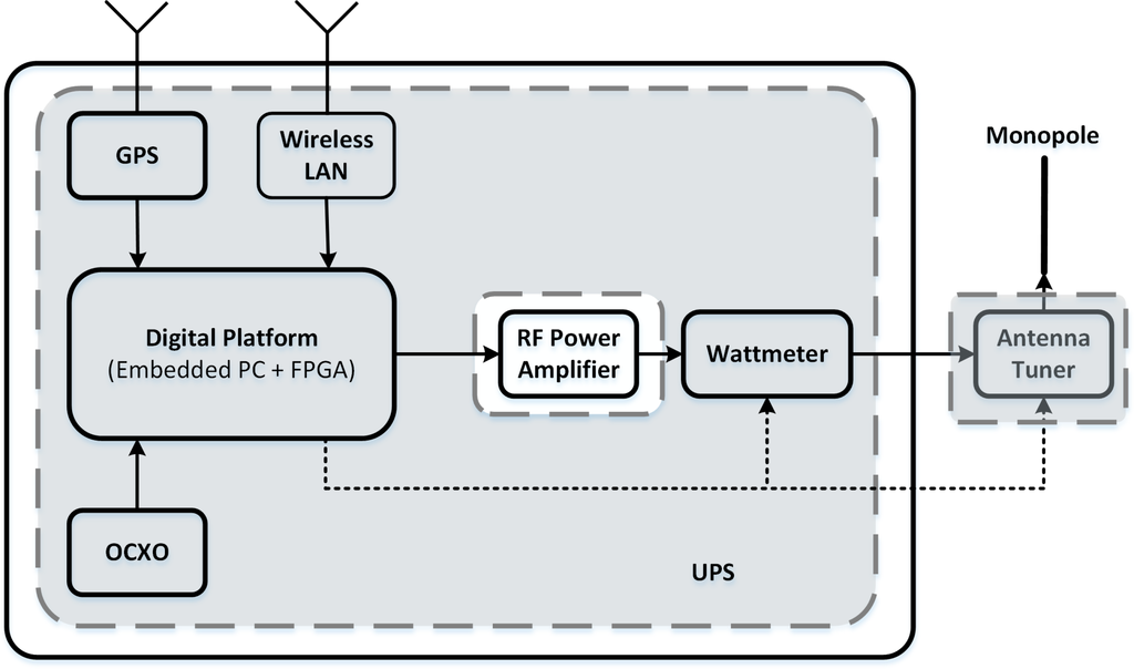 An embedded PC configures the transmitter and is remotely accessed by using a Wireless Local Area Network (WLAN) from the laboratory. Hence, the configuration is much faster and the system is able to work 24 h a day with an extended frequency range from 2 MHz to 30 MHz [20].