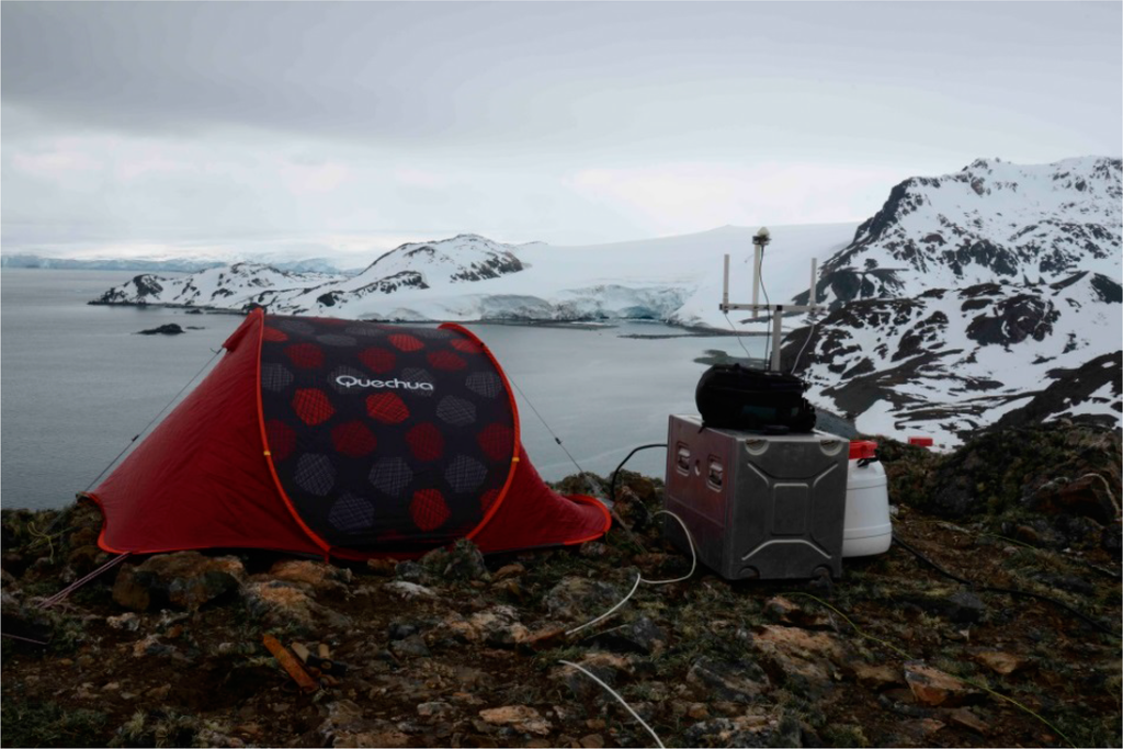 The aim of the observatory is thus to monitor both the geomagnetic and ionospheric activity and to send the data to Spain at any time so it can be analyzed and processed in real-time even when the ASJI is unattended during the austral winter. Until today, only a part of the recorded geomagnetic data from just one of our two variometers in operation (see Section 3.1 below) can be sent to Ebre Observatory using the facilities provided by the INTErnational Real-time MAGnetic observatory NETwork (INTERMAGNET). This is accomplished by means of a Data Collection Platform (DCP), which packs and sends these essential one-minute three-component data to the Geostationary Operational Environmental Satellite-East (GOES-E), operated by the National Oceanic and Atmospheric Administration (NOAA). Data are collected by the so-called INTERMAGNET Geomagnetic Information Node (GIN) in Ottawa, and made available to us via FTP. However, the primary data, sampled at 1 and 10 s rates from our two variometers, cannot be transmitted because of their huge volume, and can only be stored in memory devices that will not be downloaded until the next summer season. Mainly with the aim of transmitting this important primary data, during the 2003–2004 survey the authors that sign this paper, along with several other collaborators, started a research project with the objective of providing the remote geomagnetic observatory in the ASJI with HF data transmission. The project also included implementing both the new vertical incidence and the long-haul oblique ionospheric sounders.
