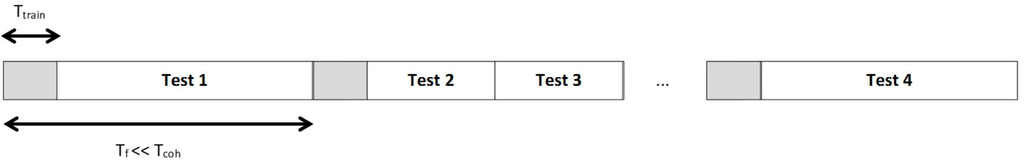 A synchronization sequence set (usually, three m sequences of length 2047 and oversampled with 10 samples per chip) is settled in the beginning of each data block [32]. The data block can contain either one test (with one bandwidth and symbol period) or several tests if these are shorter. However, the entire data block is mandatory to be shorter than a coherence time of the multipath ionospheric channel. The reason of this limitation is that with this criterion the receiver has information about the evolution of the channel performance. The bitrate depends on the modulation used, and varies from a range from 10 bps to 2 kbps. The dynamic margin of bitrates available are shown in Section 5.