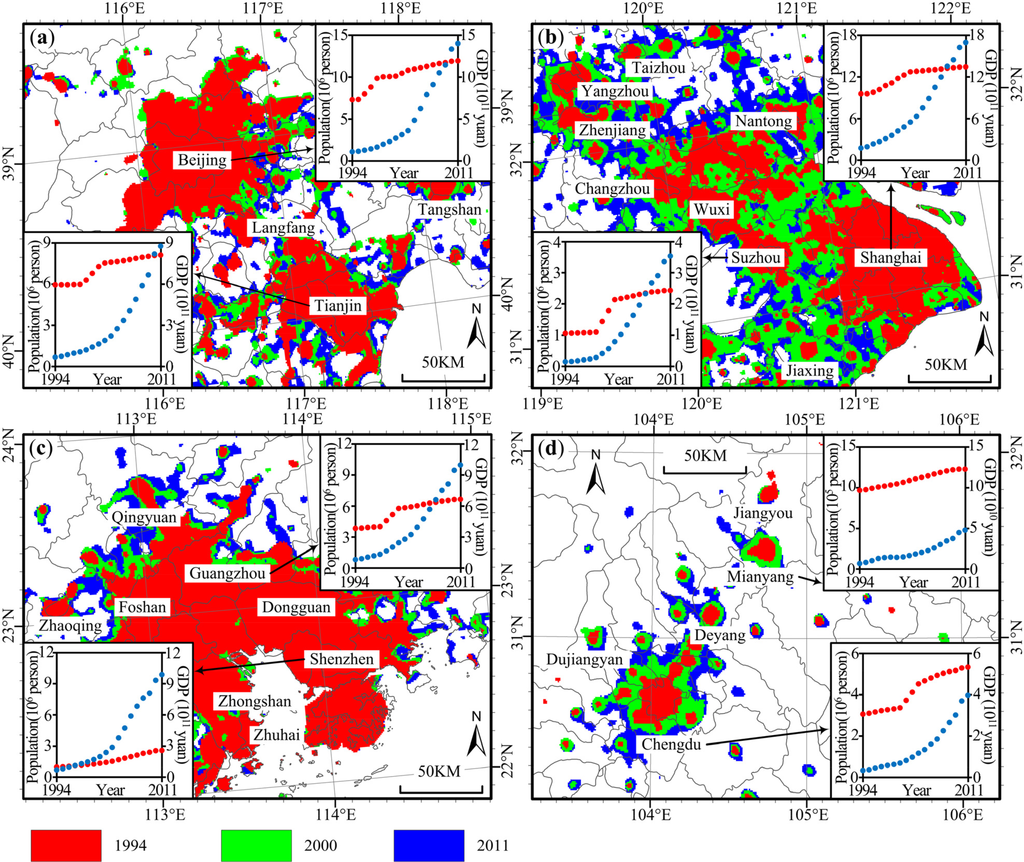 China has been undergoing a rapid urbanization accompanied by different patterns of transformation processes in the last several decades. However, no single urbanization process can account for the complicated socioeconomic and anthropogenic dynamics that occurred in different regions at a large scale [34].
