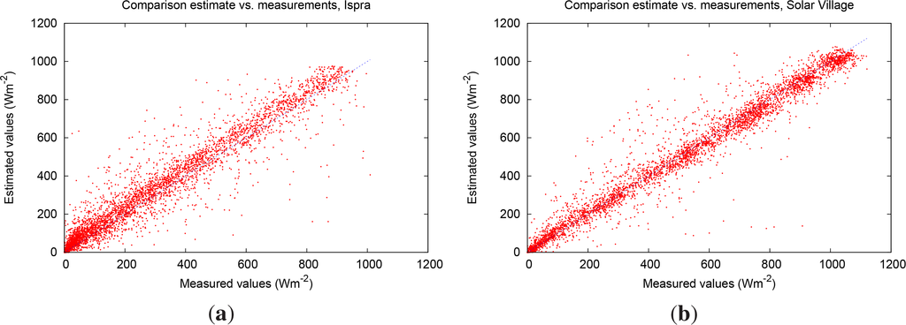 The results of the validation of the global irradiance estimates are shown in Table 3.