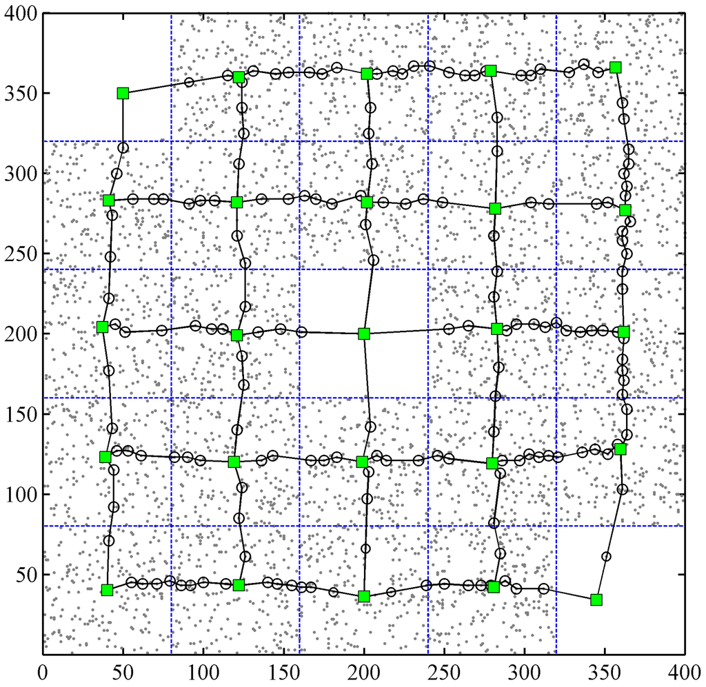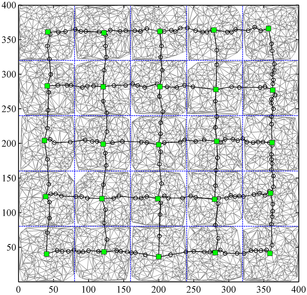 The grid size for partition of PSs should be determined reasonably to make the data quantity be moderate for two levels of PS networking. We determine the grid size by using the following equation: