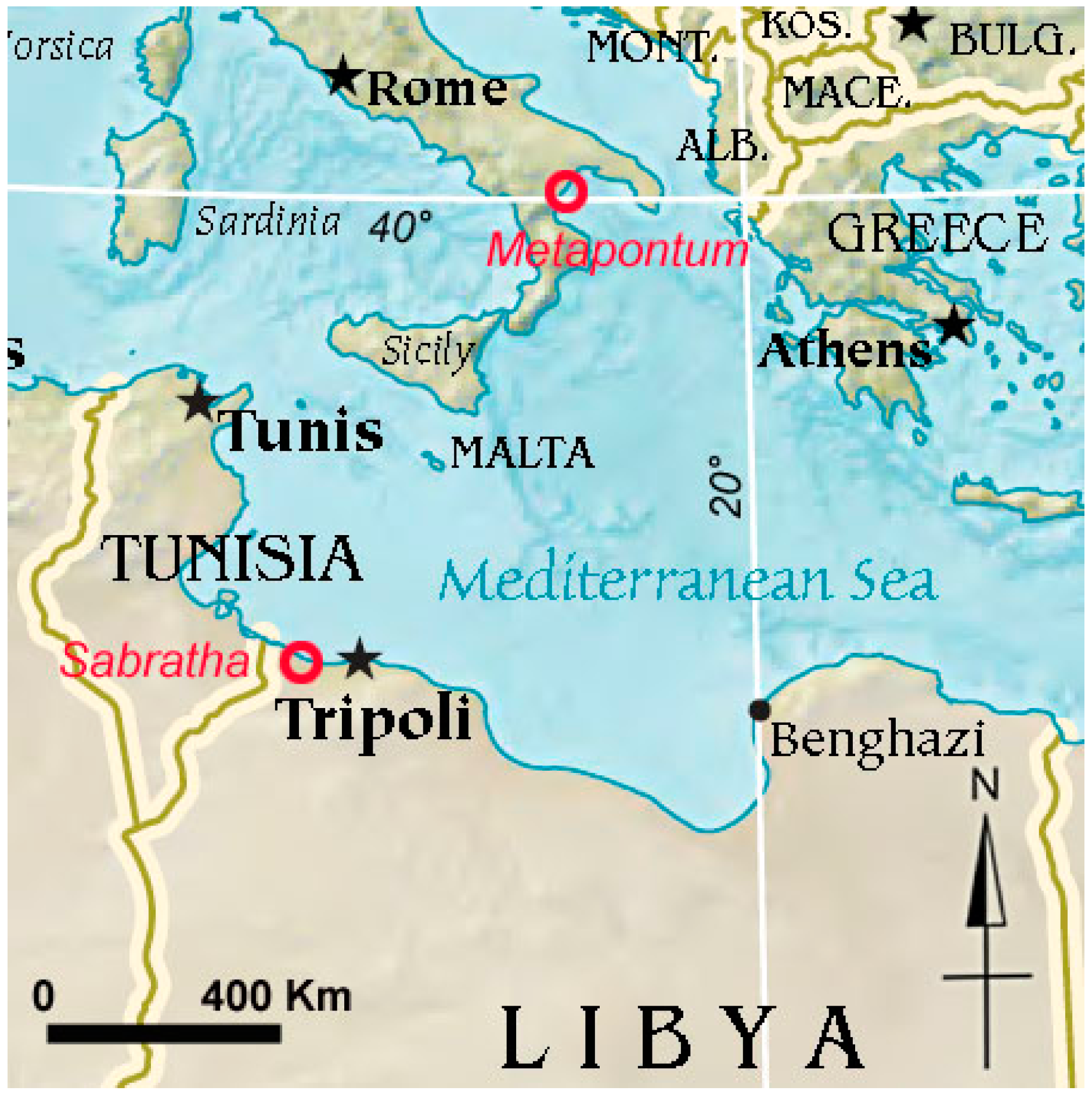 Location of Sabratha and Metaponto.
