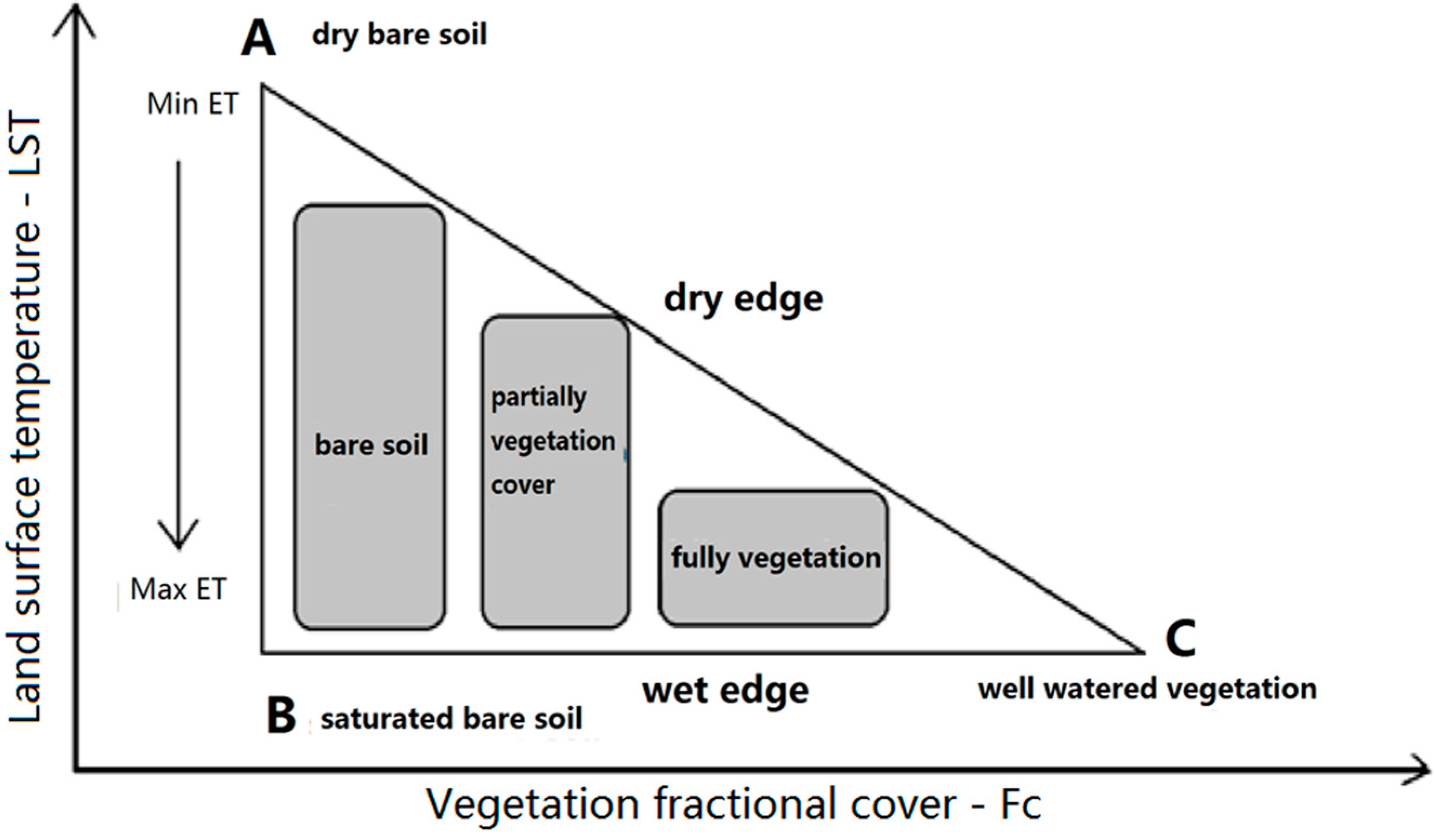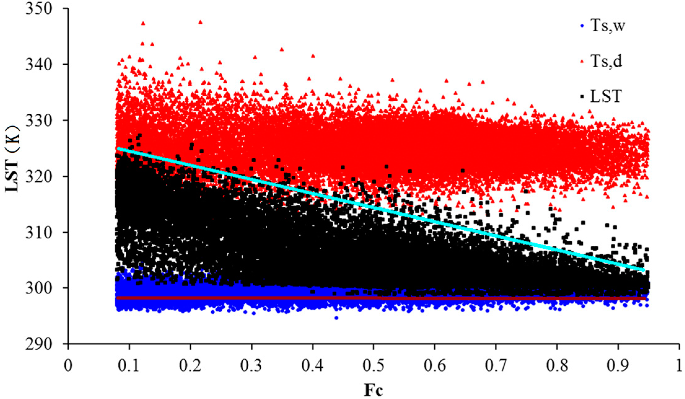Figure 1, corresponding to the maximum LST and minimal Fc. These pixels do not satisfy the definition of the dry pixel in