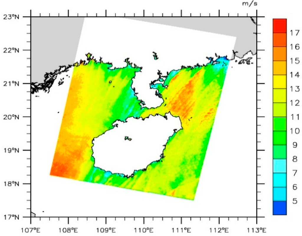 The wind resource within the northern South China Sea (SCS) is abundant, which has led to the rapid development of wind energy in recent years. The problem of quantifying offshore wind resources in this area is becoming increasingly urgent. Because of the high cost of human and material resources in installing and operating meteorological masts offshore, an economical alternative for estimation of winds offshore can be based on satellite observations. This new methodology has its limitations, however, as absolute accuracy in wind resource assessment is somewhat lower and satellite sampling is done less frequently than the observation achieved from a mast. The advantages are that satellite data are readily available over most of the globe also for the past [1]. Further, satellites can provide spatial information whereas mast observations represent a single point. The spatial resolution which can be attained for satellite wind retrievals is often higher than that of numerical models.
