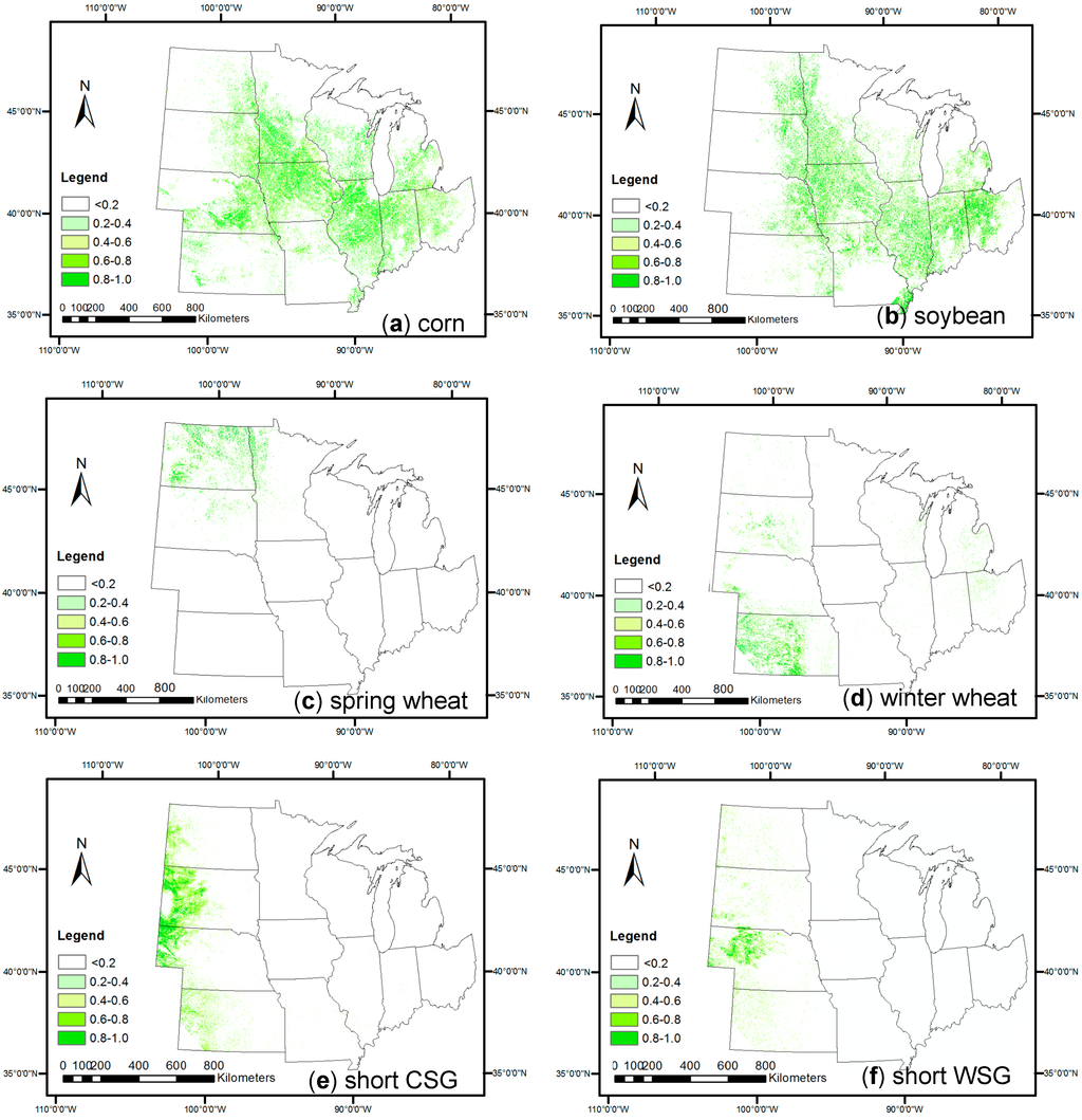 | Crops | Corn | Soybean | Spring Wheat | Winter Wheat | Short CSG | Short WSG | Tall CSG | Tall WSG |
