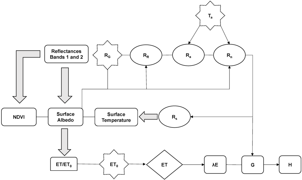 Figure 2 shows the flowchart of the steps for modelling the radiation and energy balances throughout SAFER application to MODIS images without the thermal band.