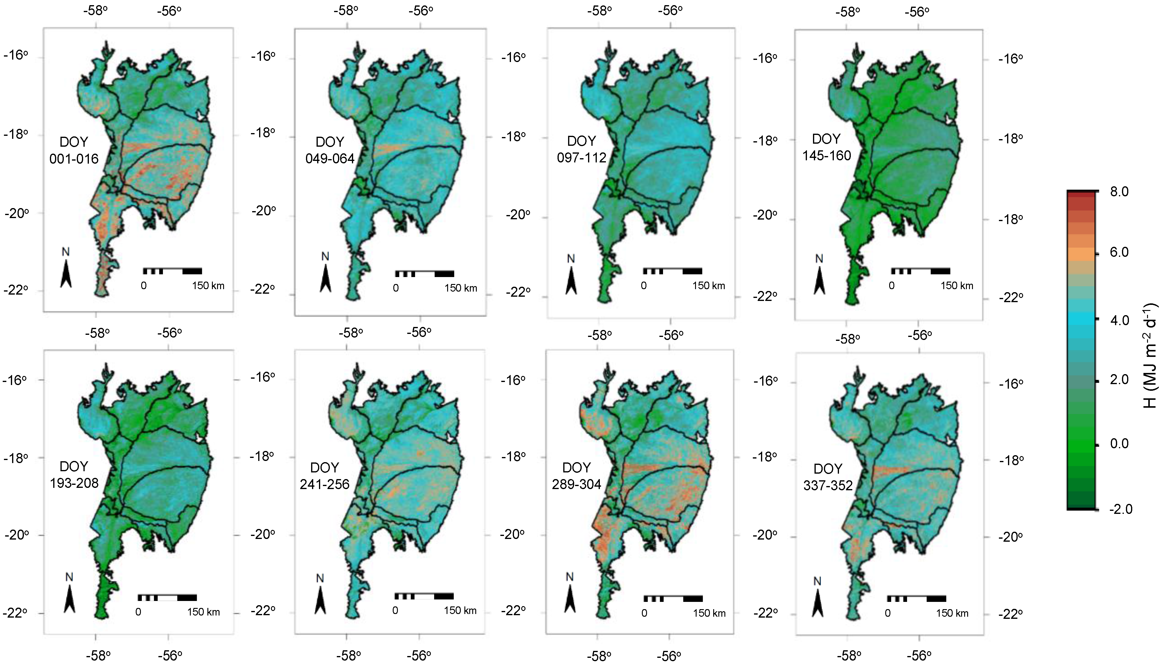 Teixeira, A.H.d.C.; Padovani, C.R.; Andrade, R.G.; Leivas, J.F.; Victoria, D.D.C.; Galdino, S. Use of MODIS Images to Quantify the Radiation and Energy Balances in the Brazilian Pantanal. Remote Sens. 2015, 7, 14597-14619. https://doi.org/10.3390/rs71114597