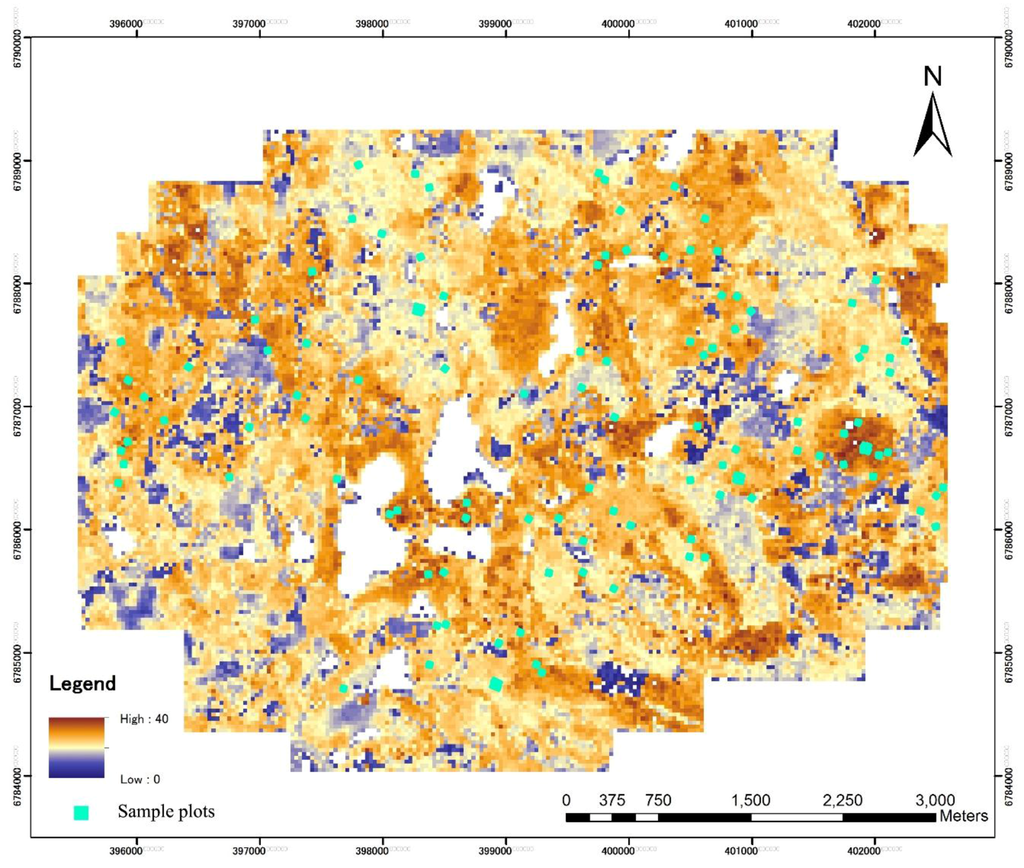 | (a) 91 sample plots of 32 m × 32 m | ||||