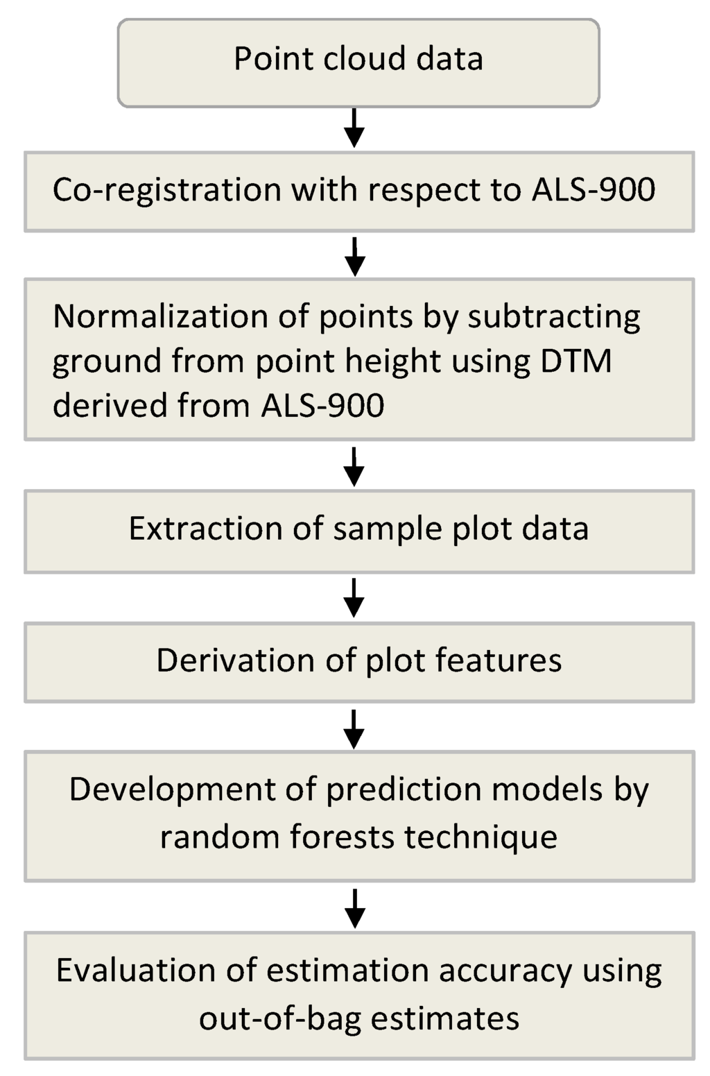 Flowchart of the method and procedure for prediction of forest attribute using point cloud.