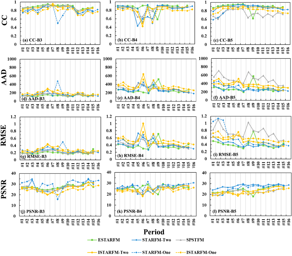 We compared three reconstruction-based models, STARFM [2], ESTARFM [15], and improved STARFM (ISTARFM) [48], and one learning-based model, SPSTFM .
