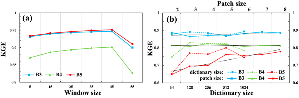 In learning-based methods, compressive sensing and sparse representation have garnered wide interest in various fields in the last decade, especially in image processing. Yang et al. [28] presented a new super-resolution method to generate high-resolution images based on sparse representation. Huang and Song [29] developed a sparse representation based on a spatiotemporal reflectance fusion model (SPSTFM) to produce a synthetic prediction using both prior and posterior pairs of Landsat and MODIS images and one MODIS image on the prediction date. Song and Huang [30] further presented a spatiotemporal fusion model using one-pair image learning. This model was implemented in two stages: first, the spatial resolution of MODIS data on prior and posterior dates is improved through sparse representation; second, the observed Landsat and enhanced MODIS data were fused via a high-pass modulation [30].