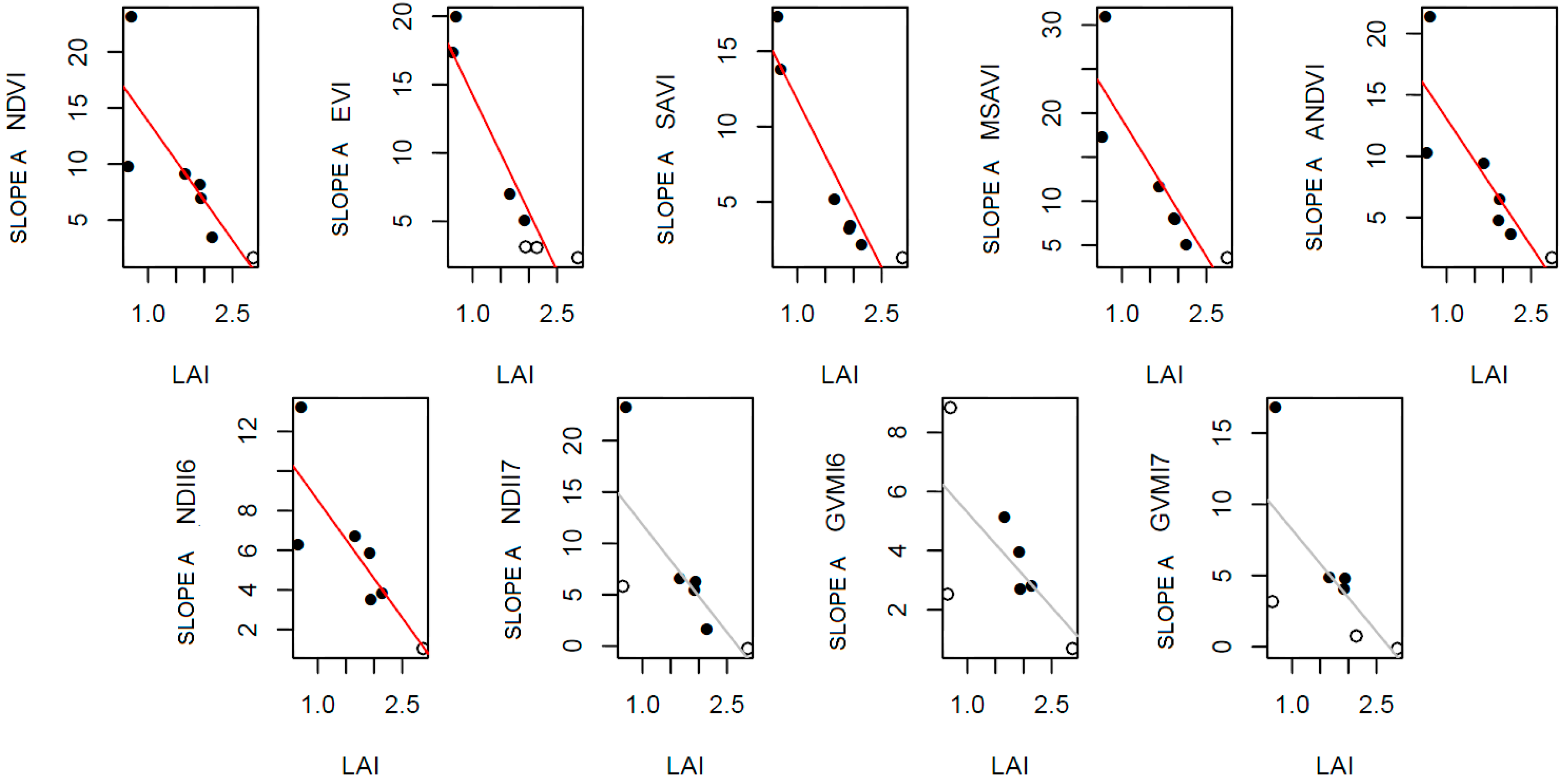 | (c) Regression Summary Table for the (LAI, Slope (A)) Relationship | |||||||||