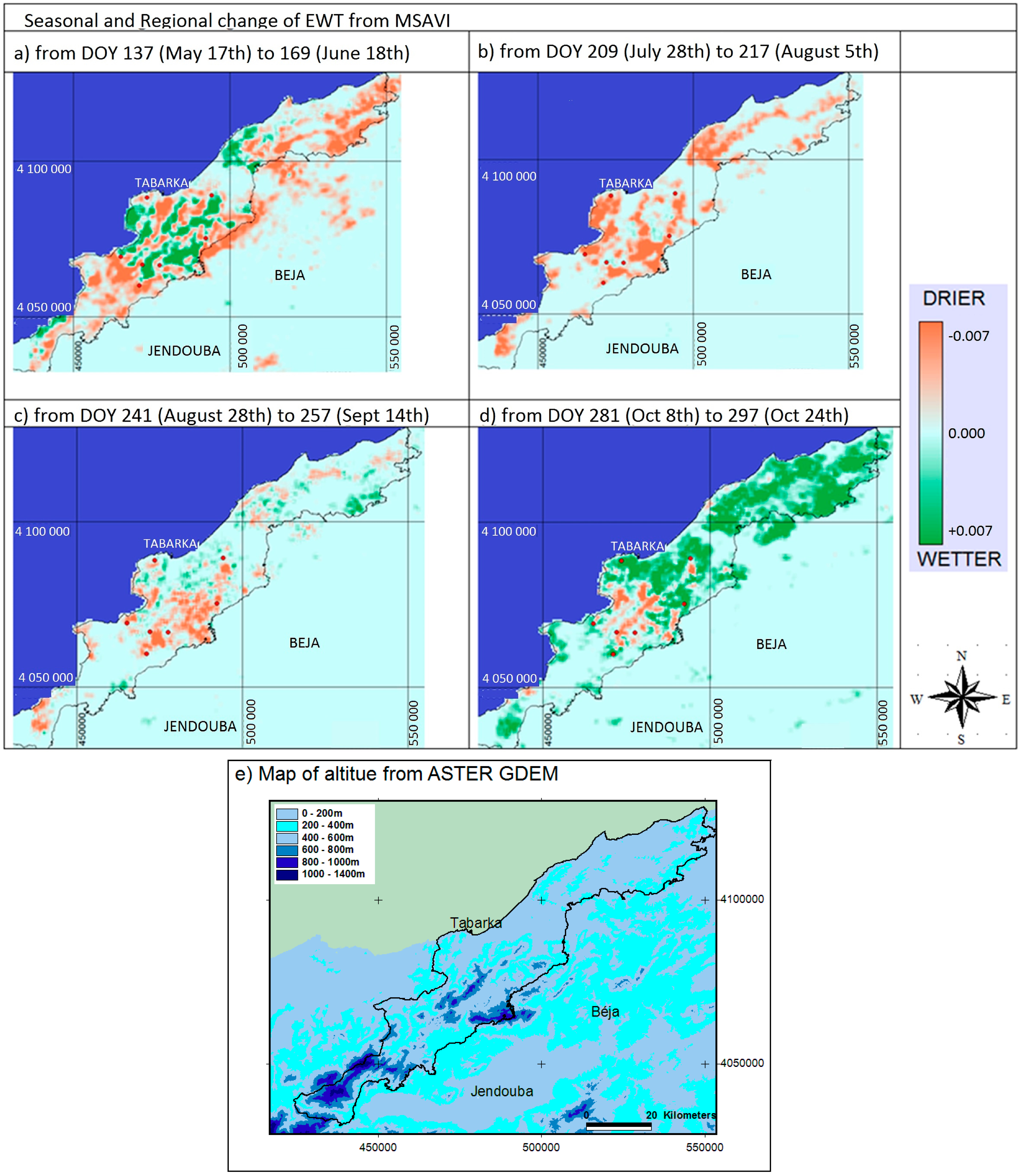 Chakroun, H.; Mouillot, F.; Hamdi, A. Regional Equivalent Water Thickness Modeling from Remote Sensing across a Tree Cover/LAI Gradient in Mediterranean Forests of Northern Tunisia. Remote Sens. 2015, 7, 1937-1961. https://doi.org/10.3390/rs70201937