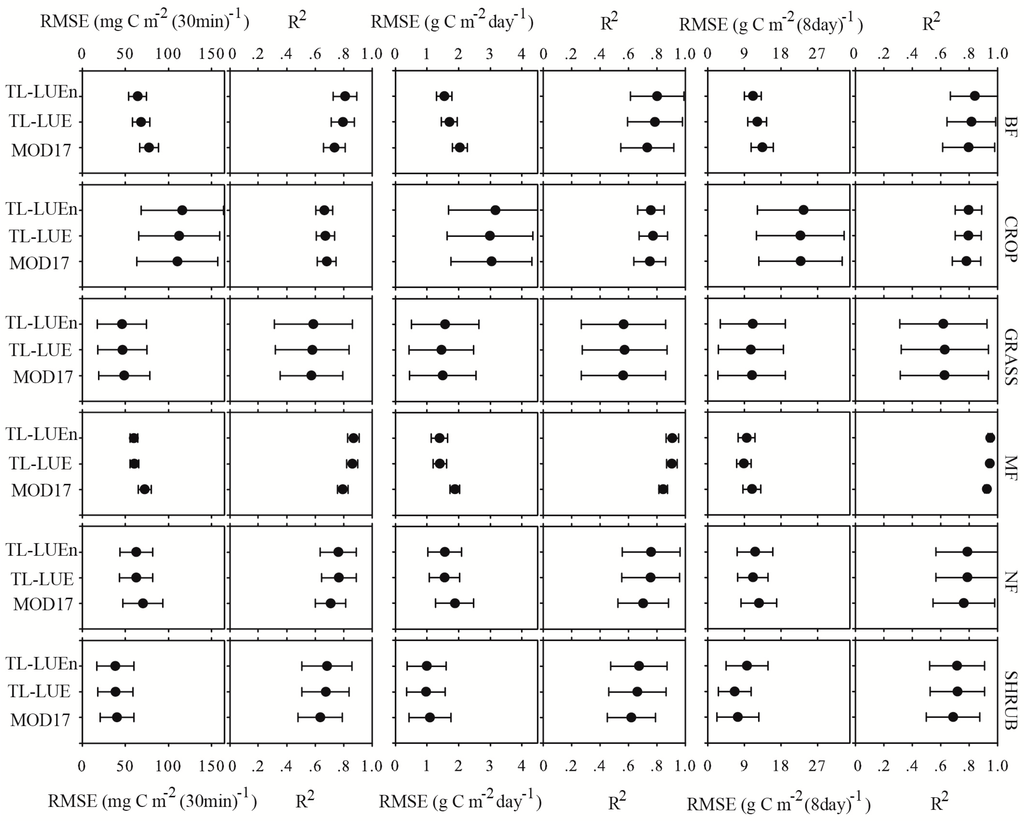 Type | ID | RMSE(g C m −2 (8days) −1) | R2 | |||||