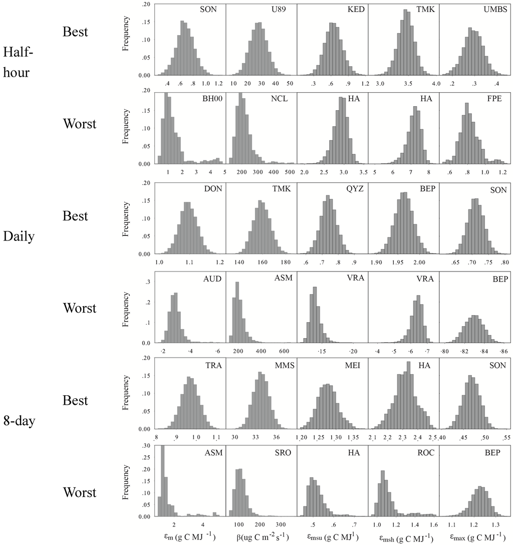 | εmax (g C/MJ)** | 1.044 | 1.008 | 1.259 | 1.116 | 0.604 | 0.604 | 0.888 | 0.774 | 0.768 |