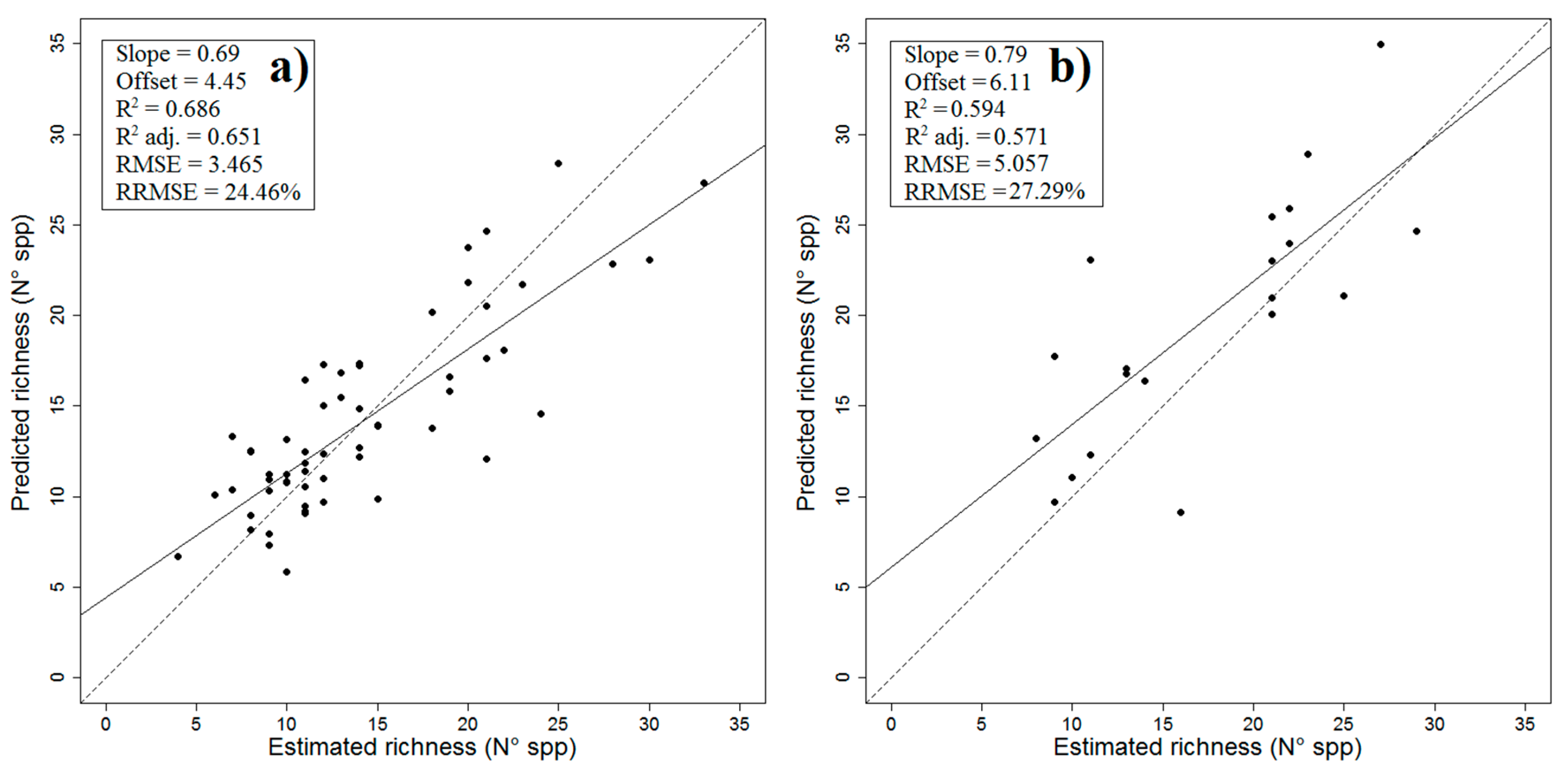 - Camathias, L.; Bergamini, A.; Küchler, M.; Stofer, S.; Baltensweiler, A. High-resolution remote sensing data improves models of species richness. Appl. Veg. Sci. 2013, 16. [Google Scholar] [CrossRef]