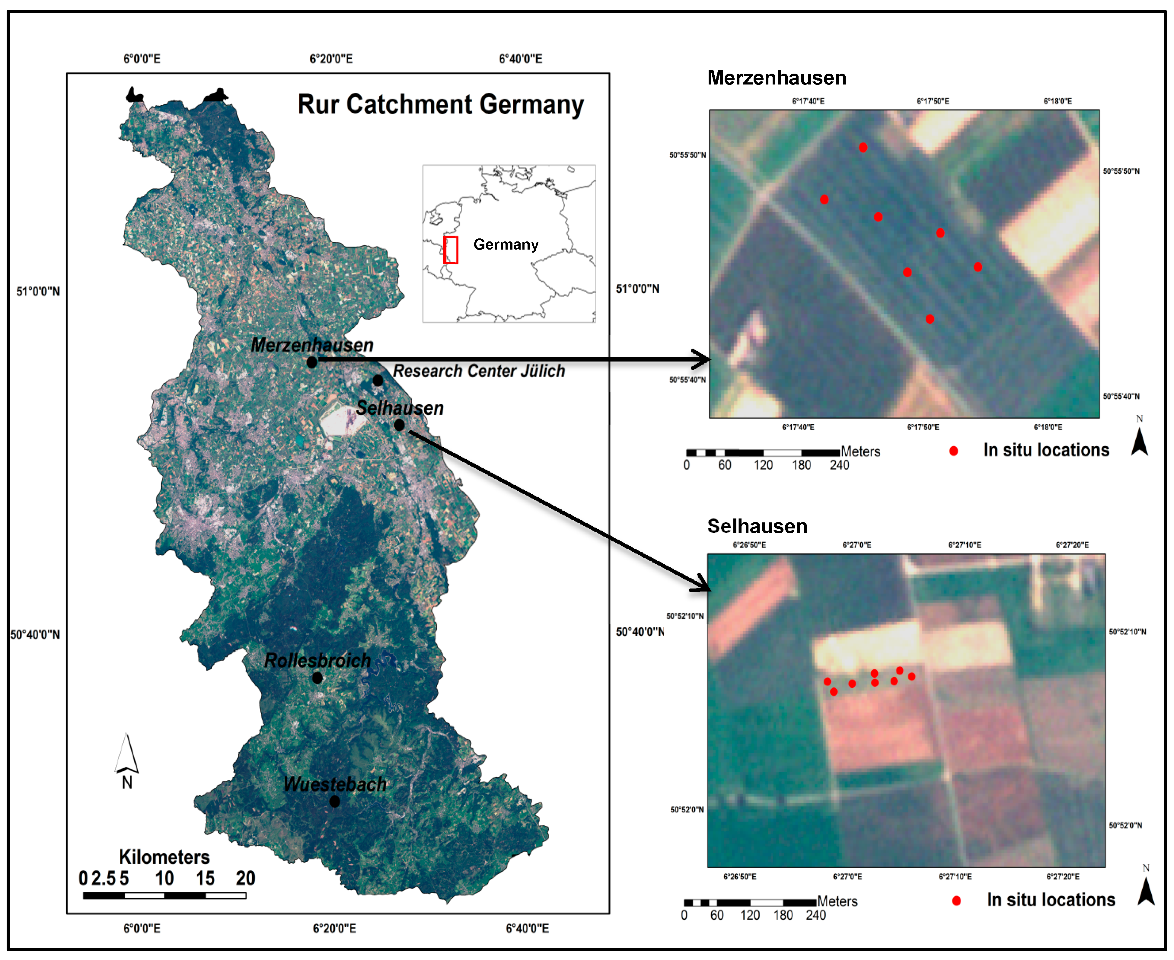 - Lussem, U.; Waldhoff, G. Enhanced Land Use Classification of 2011 for the Rur Catchment. Available online: http://www.tr32db.uni-koeln.de/site/index.php (accessed on 9 March 2015).