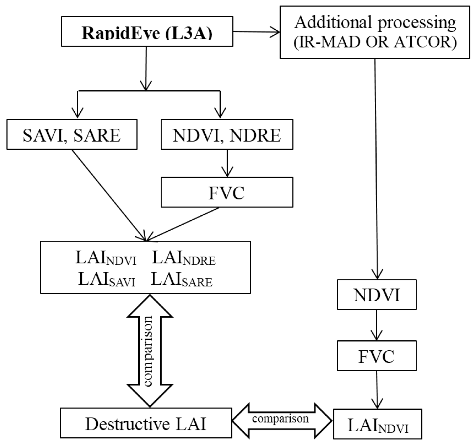- Asam, S.; Fabritius, H.; Klein, D.; Conrad, C.; Dech, S. Derivation of leaf area index for grassland within alpine upland using multi-temporal Rapideye data. Int. J. Remote Sens. 2013, 34, 8628–8652. [Google Scholar] [CrossRef]