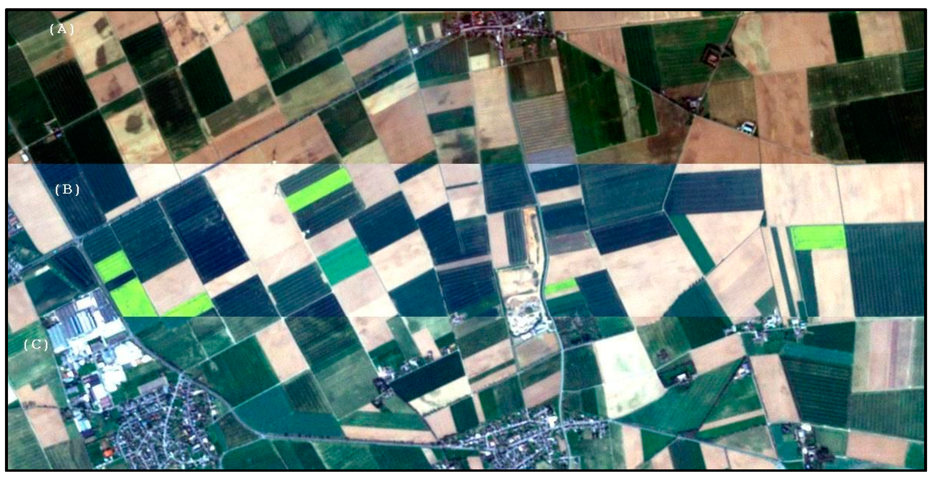 - Canty, M.J.; Nielsen, A.A. Automatic radiometric normalization of multitemporal satellite imagery with the iteratively re-weighted mad transformation. Remote Sens. Environ. 2008, 112, 1025–1036. [Google Scholar] [CrossRef]