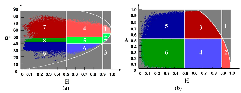 2-D segmented planes: (a) H-α segmented plane and (b) H/A segmented plane.