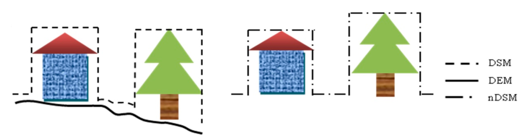 The relationships between the DSM, DEM and nDSM.
