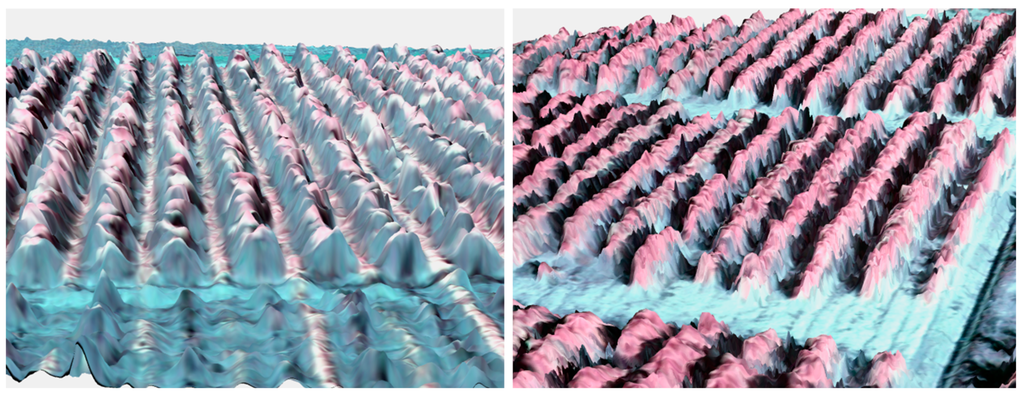 3D blocks of the color infrared (CIR) orthomosaics draped on the DSM for two sections of Study Area 1 (Left) and Study Area 2 (Right).