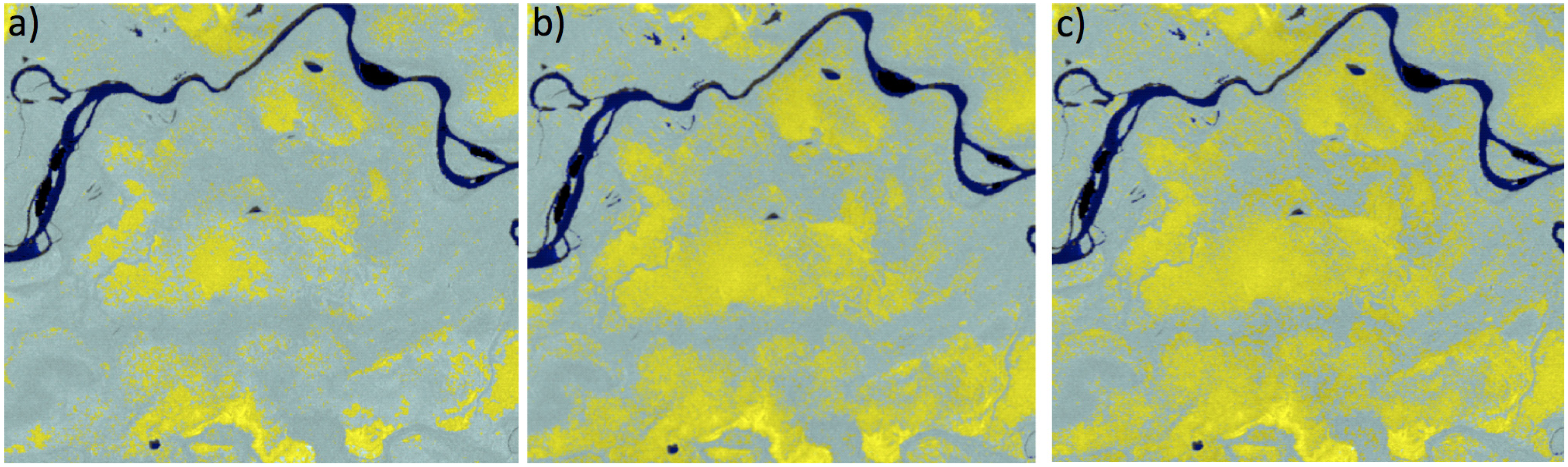These results compose a portion of an Inundated Wetlands Earth Science Data Record (IW-ESDR) funded by NASA’s MEaSUREs program. Through this program, these data products are made available through the ASF wetlands portal at the Alaska Satellite Facility Data Active Archive Center (ASF DAAC) [47].