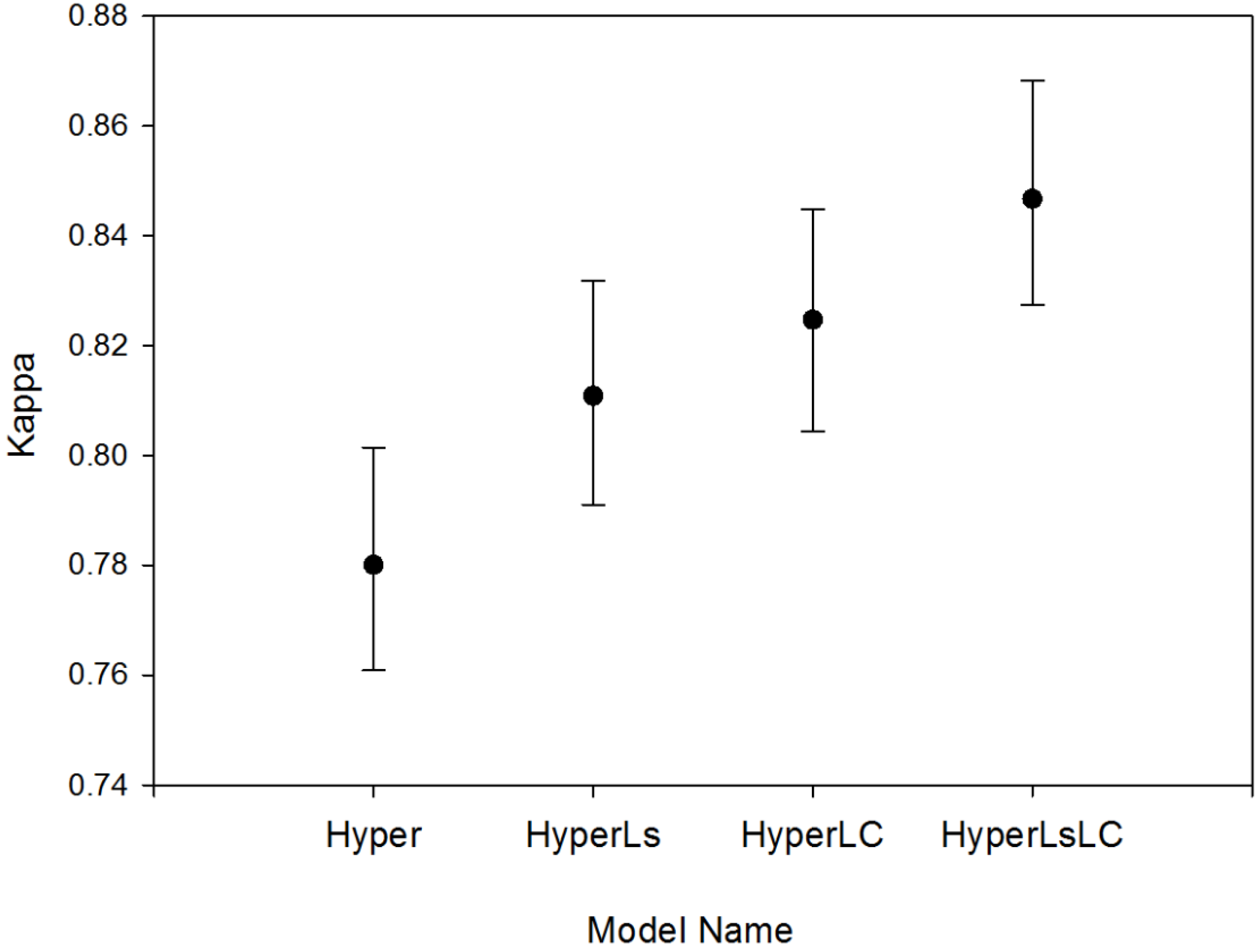| Hyperspectral + Landsat | (2).Hyper + Landsat spectral data (Ls) | (3).Hyper + Landsat land cover data (LC) Hyper + Ls + LC |