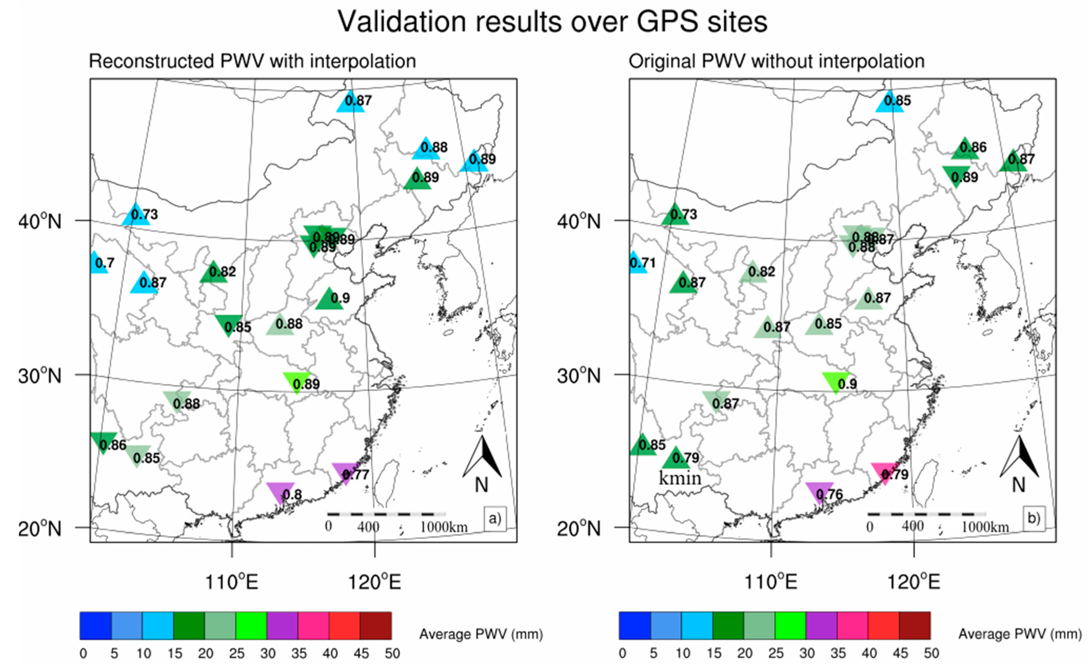 - In order to obtain an unbiased initial value, the whole PWV matrix is subtracted from the average value, and the missing values are initialized as zero. One percent of cloud-free pixels is not used for reconstruction and are later used for cross-validation.