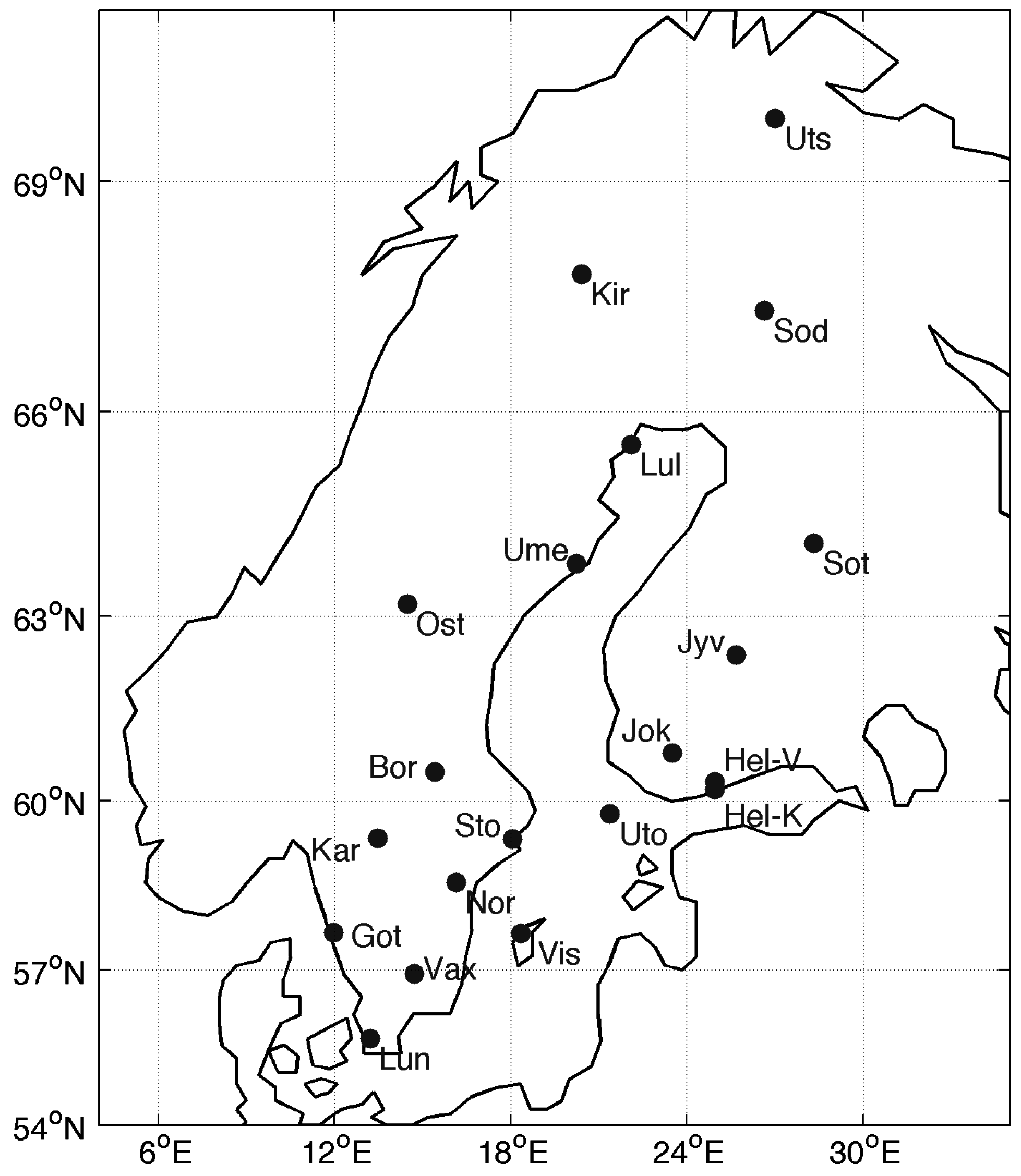 in situ observation networks of FMI and SMHI. The locations of the measurement stations are listed in