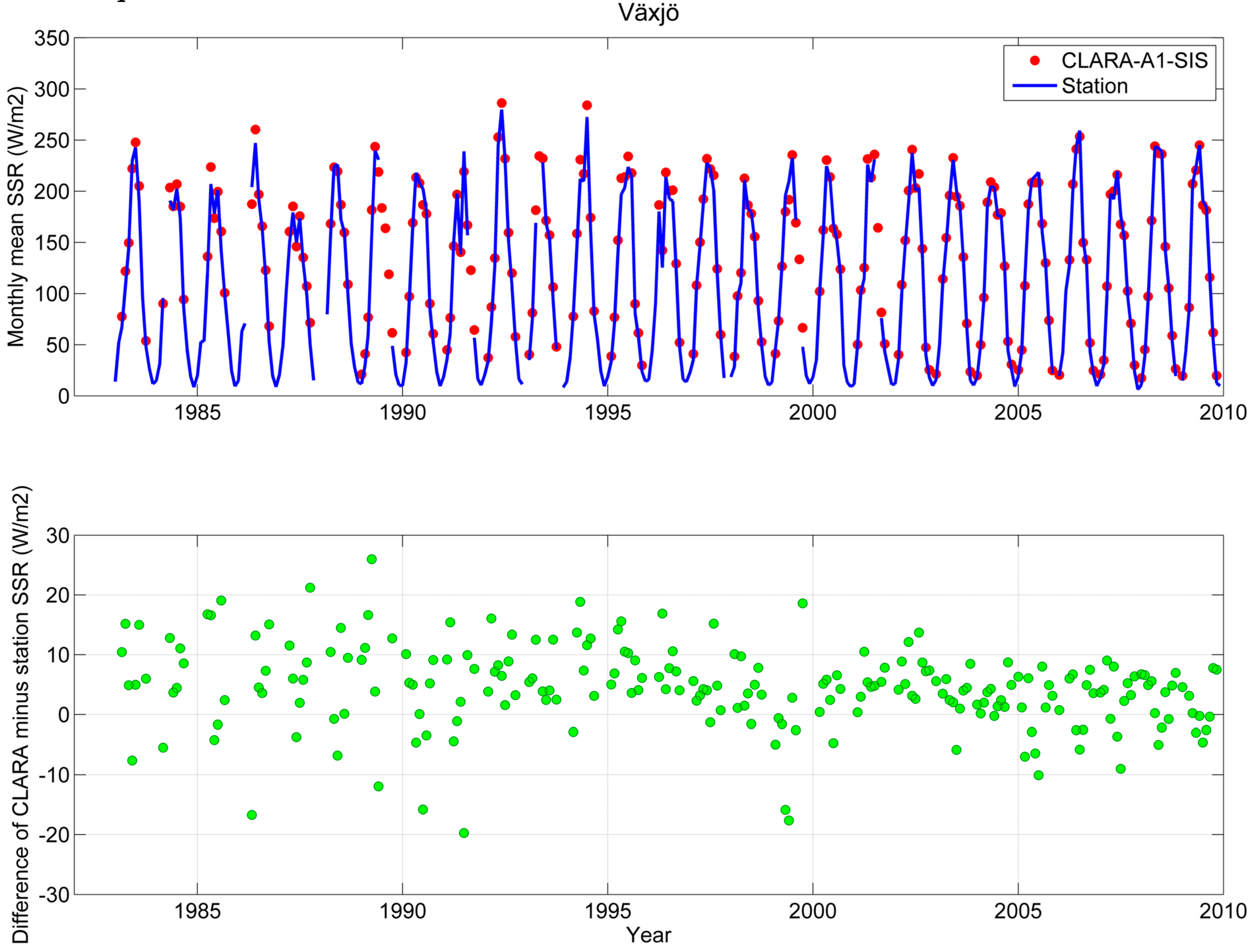 The Satellite Application Facility on Climate Monitoring (CM SAF), a project of EUMETSAT, has produced several long-term homogenized datasets of surface irradiance from both polar-orbiting and geostationary optical imager data. Specifically, the CM SAF cLoud, Albedo and RAdiation dataset from AVHRR data—edition 1 (CLARA-A1) [