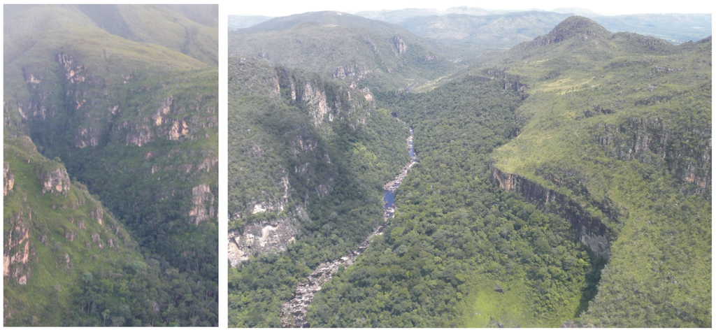 The CVNP has a stunning natural beauty, especially due to the waterfalls, vertical escarpments, canyons and rivers [45]. The CVNP corresponds to the uppermost parts of the Brazilian Central Plateau (BCP), having its peak in the region of Pouso Alto with an altitude of 1676 meters. The geomorphology has a strong lithological and structural control. The CVPN is in the northern sector of the Brasília fold-and-thrust-belt, which is a major tectonic unit of the Tocantins Province in Central Brazil, resulting from the Neoproterozoic collision episode between São Francisco and Congo cratons [46]. In the CVNP, the predominant rocks are quartzites and meta-siltstones that due to its high resistance to physical and chemical weathering generate shallow soils with low fertility [45].