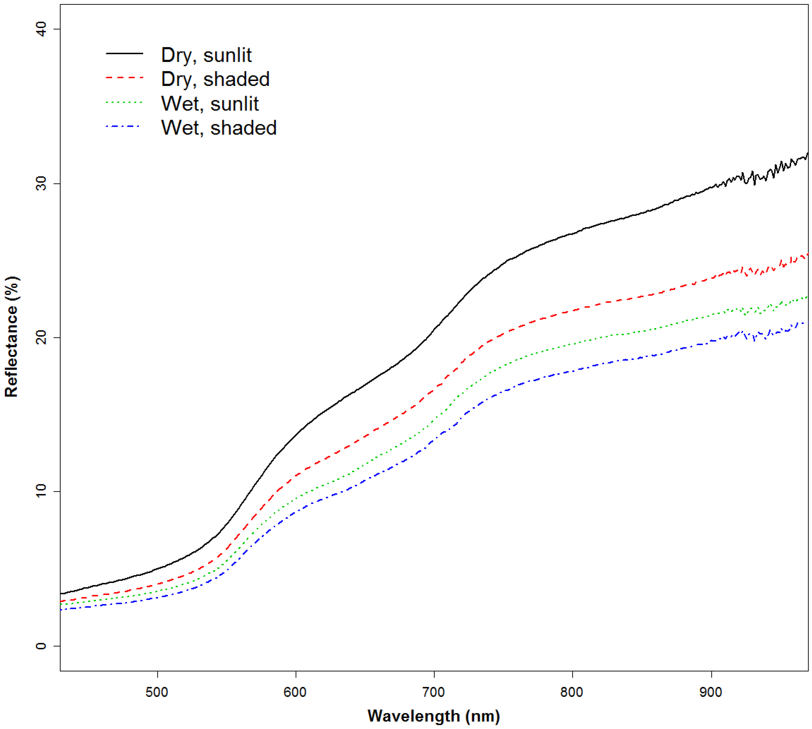 - Sims, D.A.; Gamon, J.A. Relationship between leaf pigment content and spectral reflectance across a wide range species, leaf structures and development stages. Remote Sens. Environ. 2002, 81, 337–354. [Google Scholar]