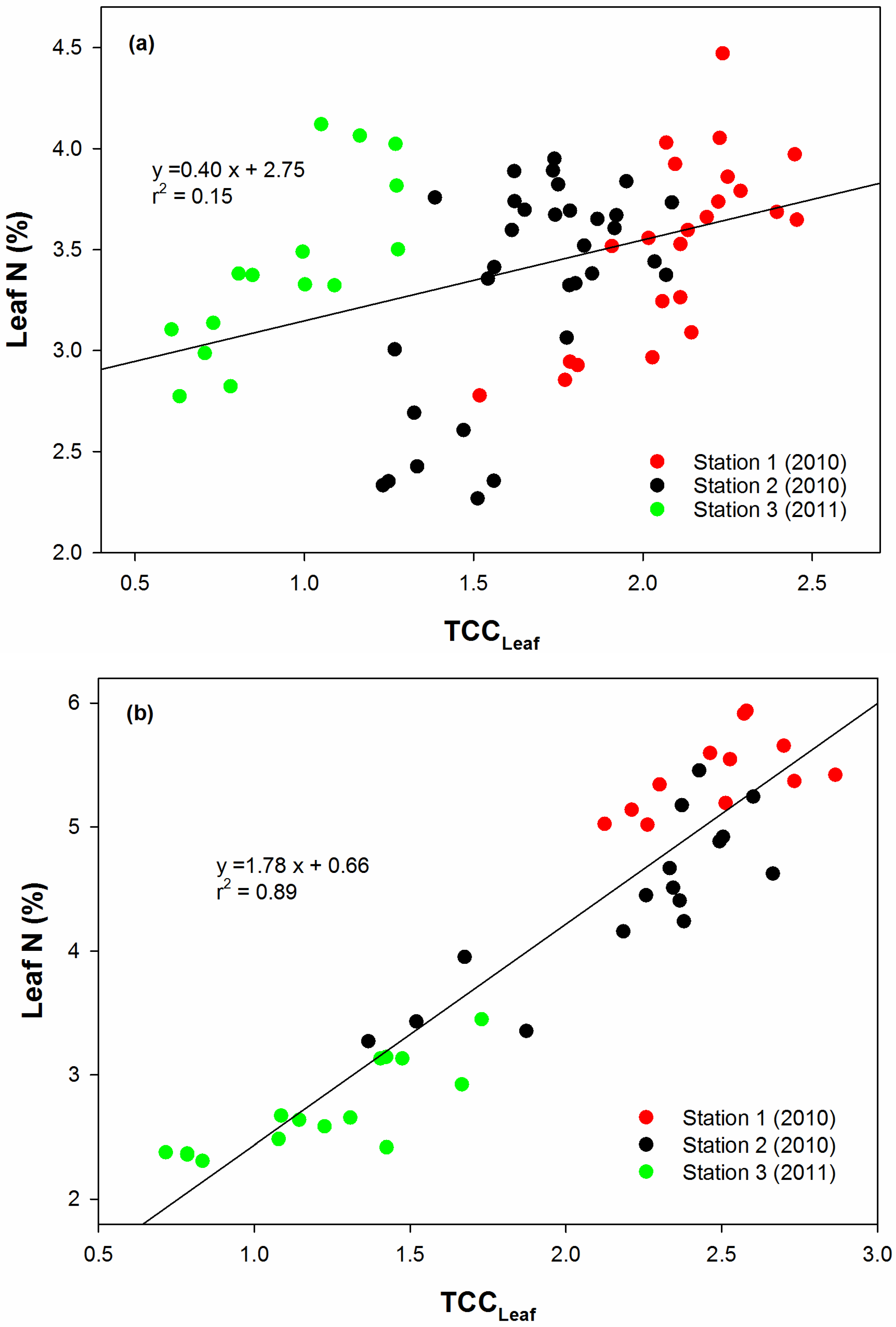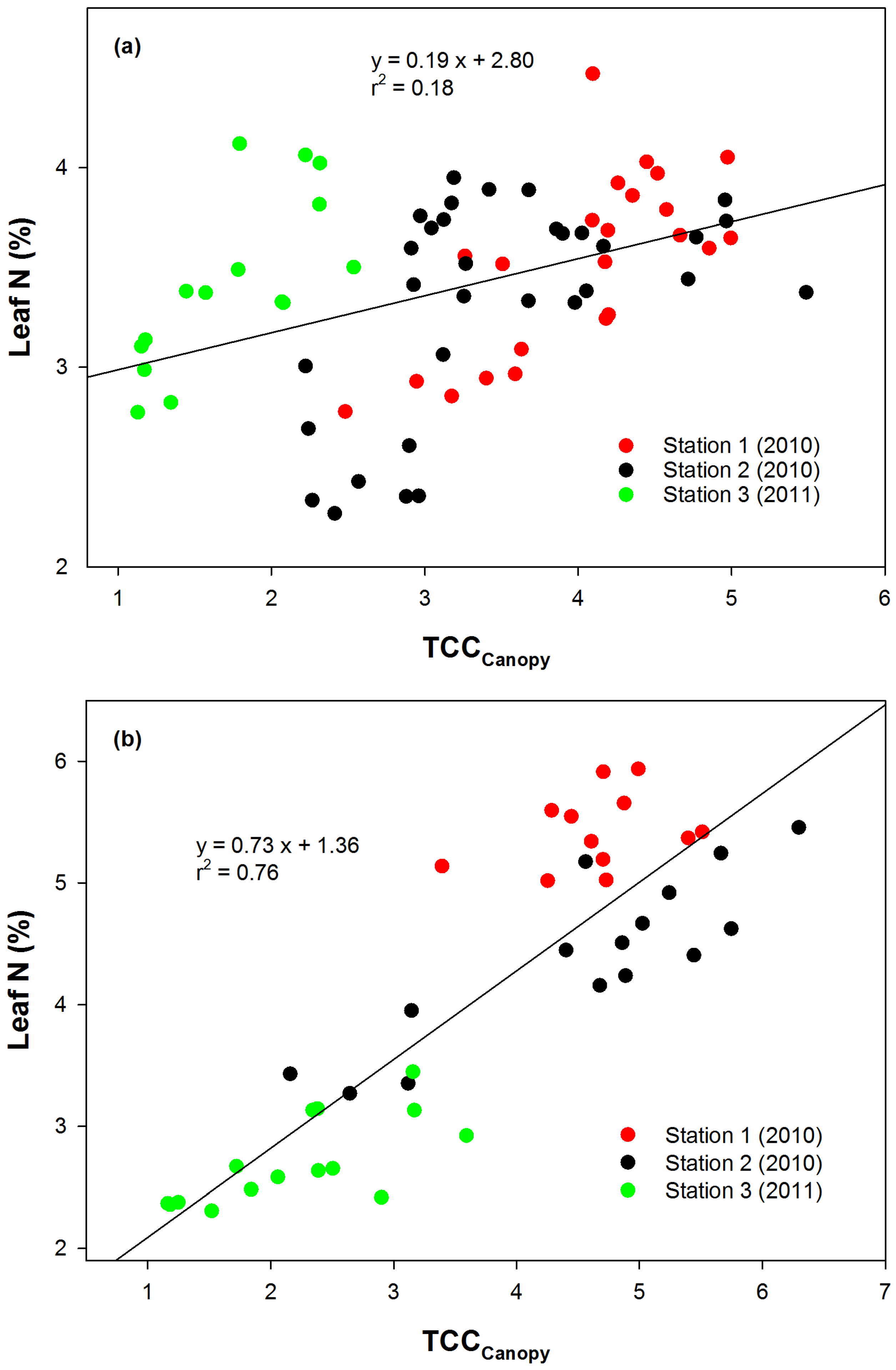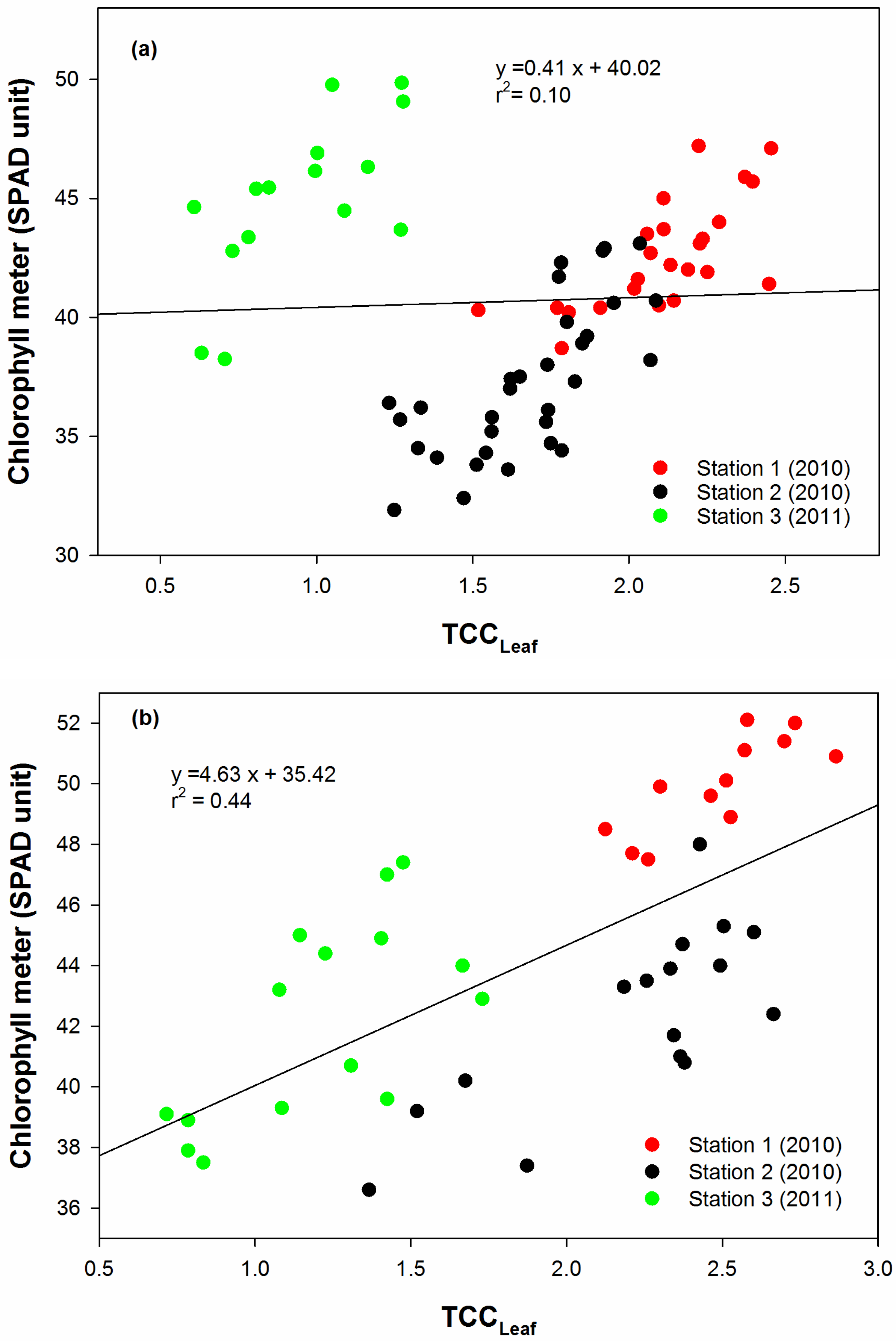 3.1. Correlations between Leaf Greenness and Chlorophyll Meter Readings
