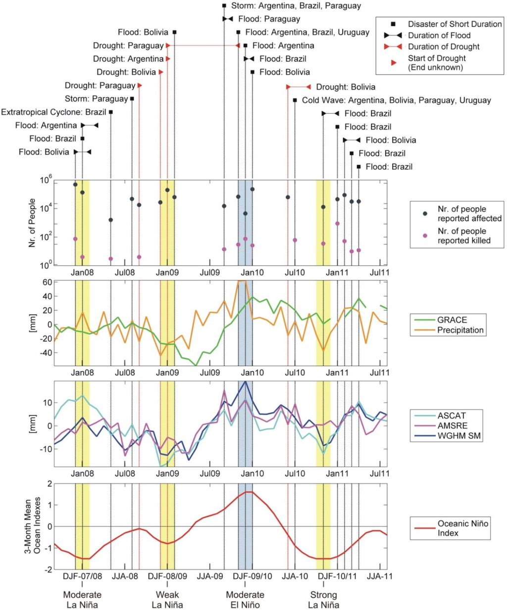 Abelen, S.; Seitz, F.; Abarca-del-Rio, R.; Güntner, A. Droughts and Floods in the La Plata Basin in Soil Moisture Data and GRACE. Remote Sens. 2015, 7, 7324-7349. https://doi.org/10.3390/rs70607324
