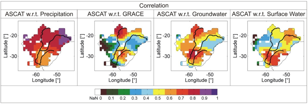 - Abelen, S.; Seitz, F. Relating satellite gravimetry data to global soil moisture products via data harmonization and correlation analysis. Remote Sens. Environ. 2013, 136, 89–98. [Google Scholar] [CrossRef]