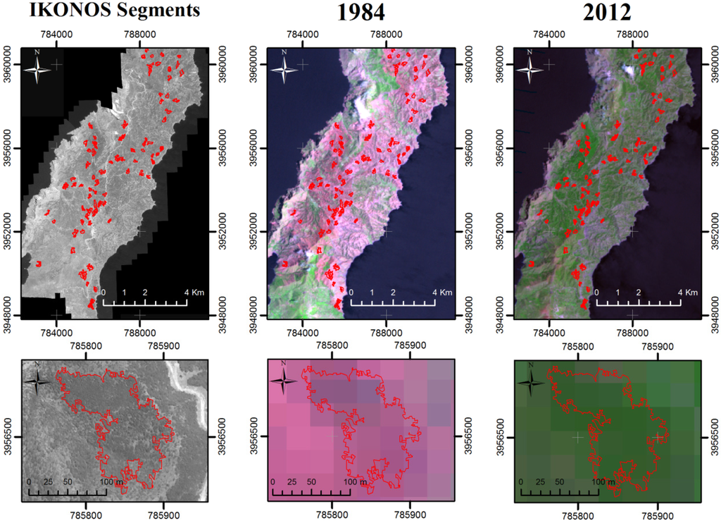 The main objectives of this study are: (a) to identify the environmental parameters that could contribute to the recovery of the P. brutia woodlands burned in 1983 at the island of Karpathos (SE-Aegean); and (b) to identify the land cover changes (1982–2009) associated with this fire event. The study implements a remote sensing and GIS approach with LANDSAT satellite images and vegetation indices estimated a few months (1984) and almost 30 years after the fire (2012).