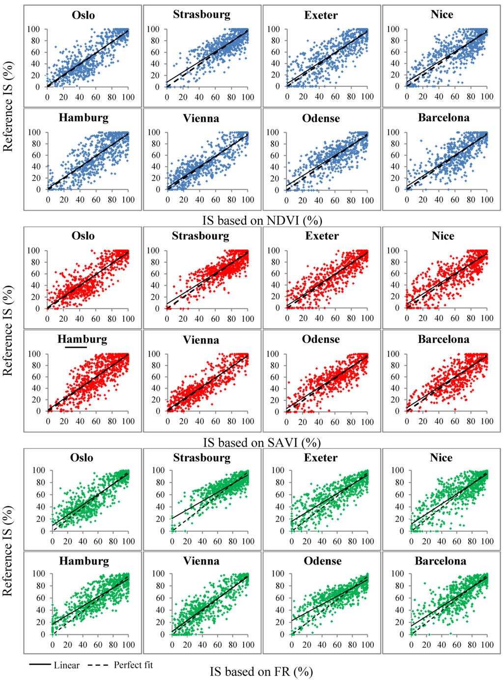 Kaspersen, P.S.; Fensholt, R.; Drews, M. Using Landsat Vegetation Indices to Estimate Impervious Surface Fractions for European Cities. Remote Sens. 2015, 7, 8224-8249. https://doi.org/10.3390/rs70608224