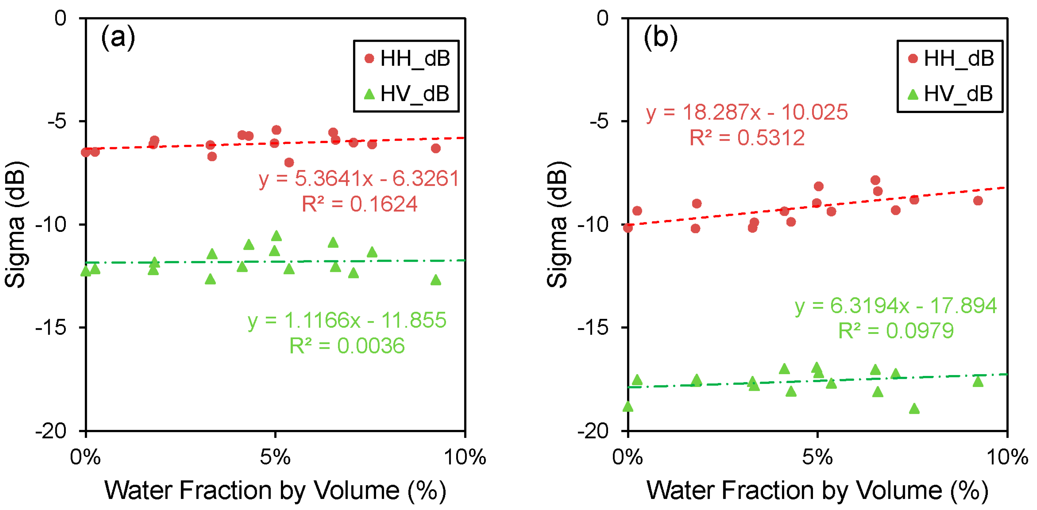 4.2. Sensitivity of SAR Backscatter to Soil Moisture