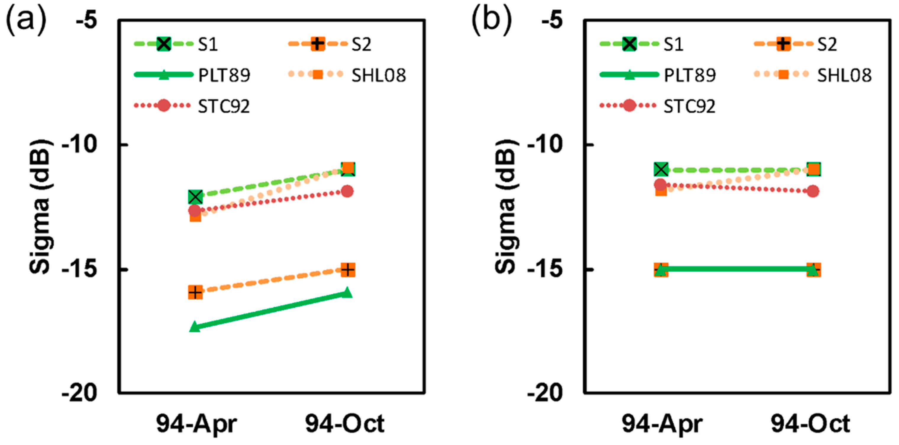 4.1. Sensitivity of SAR Backscatter to Incidence Angle