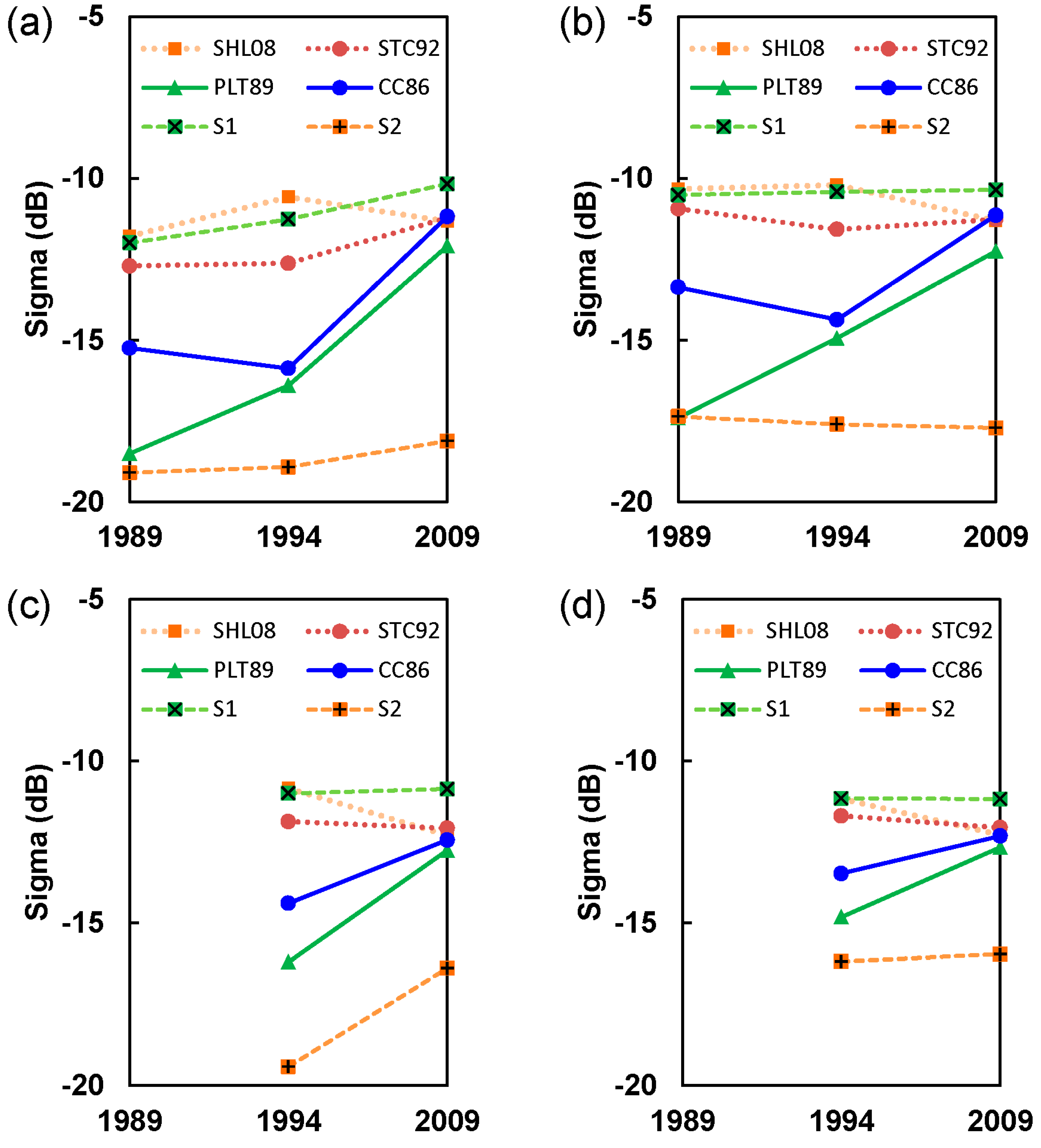 | AIRSAR | / | 09/02/1989 | 10 | 35.0 | T ~ 10.1 °C | 16.8 | 18.6 | 27.6 |